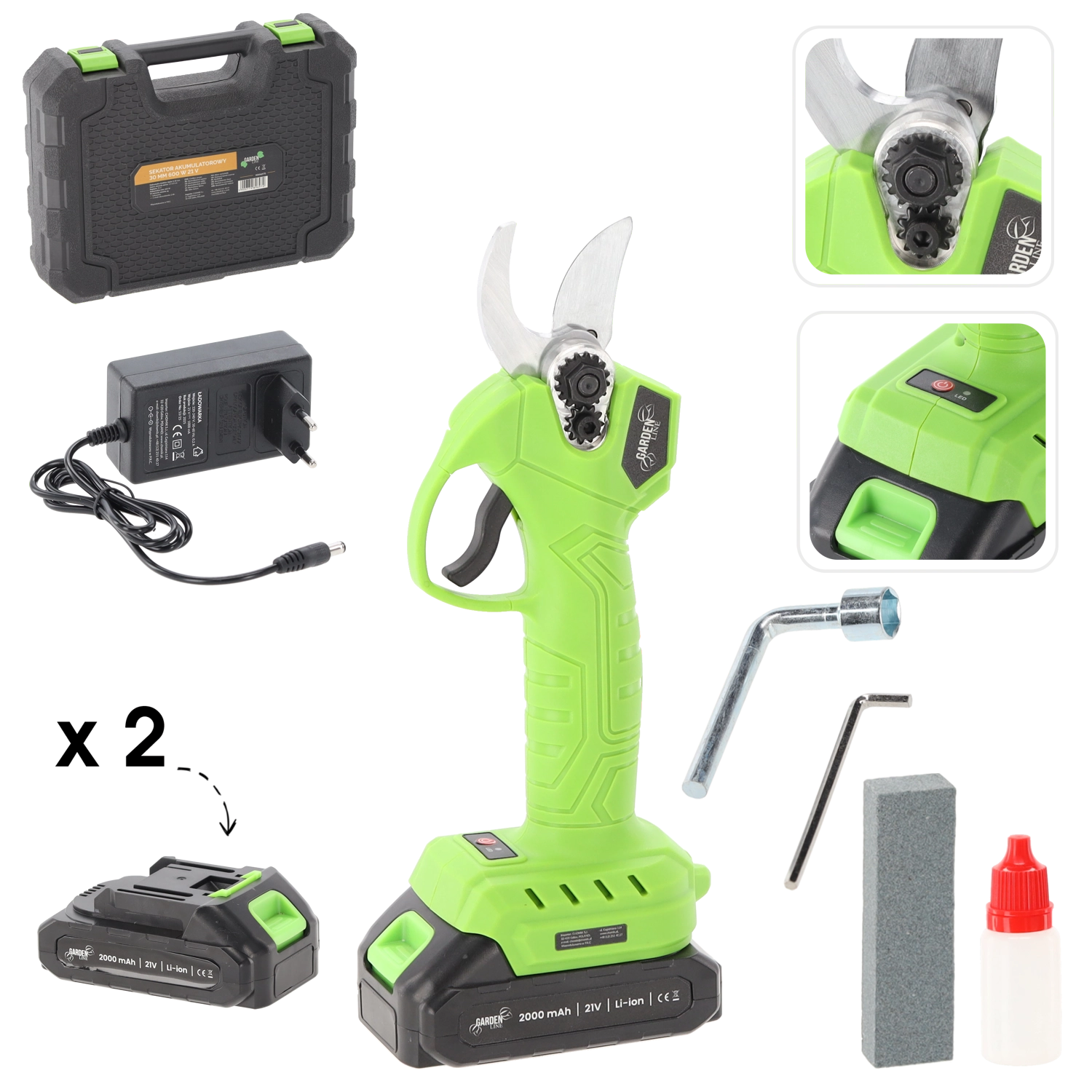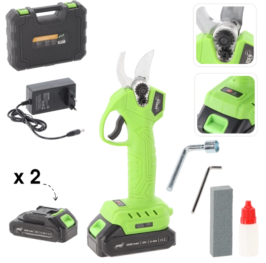 Könnyű és nagy teljesítményű akkumulátoros kerti metszőolló kefementes motorral, amely tiszta vágásokat végez akár 30 mm átmérőig. A 21 V-os tápellátásnak és a 600 W maximális teljesítménynek köszönhetően gyorsan és pontosan vág, kábelek és korlátozások nélkül. Az ergonomikus fogantyú, a kis tömeg és az egykezes vezérlés kényelmes munkát biztosít hosszabb használat során is. A csomagban 2 db 2 Ah akkumulátor és egy töltő található – azonnal munkára kész a kicsomagolás után.