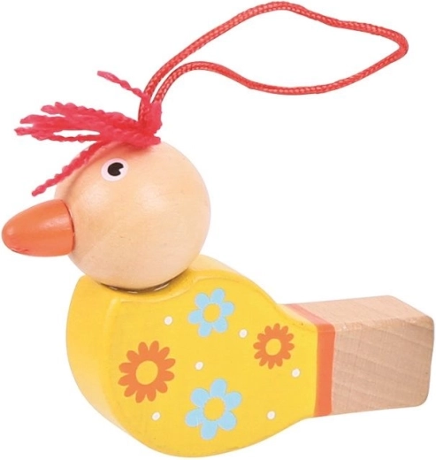 Színes fajáték madárka síp vidám sárga kivitelben örömöt és szórakozást hoz minden gyermeknek. Fújj bele, és hagyd, hogy a madárka vidám dallamot fütyüljön.