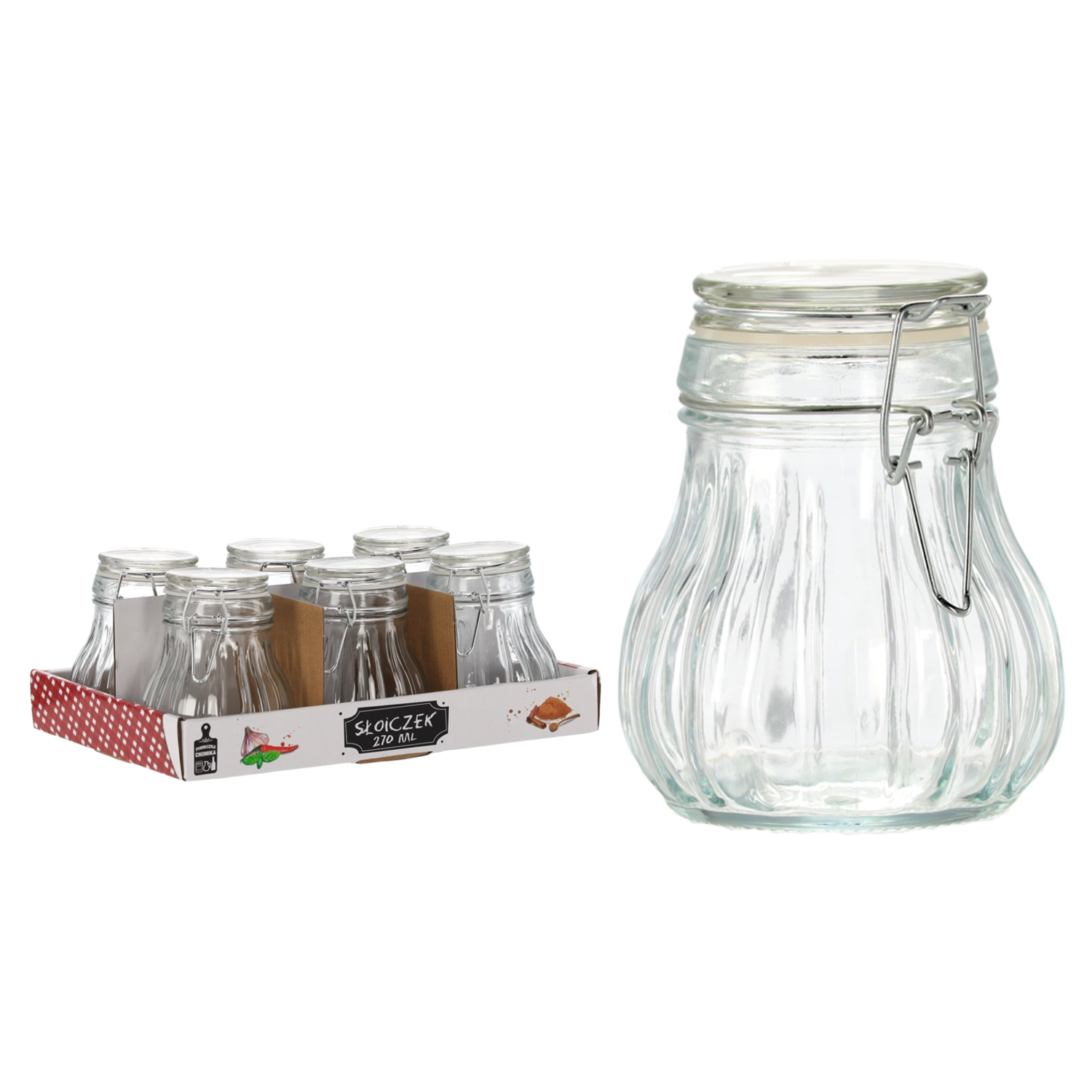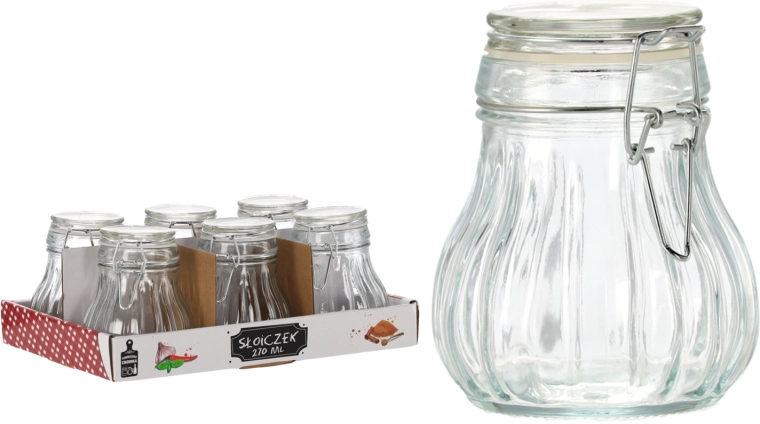 Praktikus és elegáns, 270 ml űrtartalmú üvegdoboz, ideális fűszerek, befőttek, lekvárok vagy méz tárolására. A átlátszó üvegnek köszönhetően könnyen látható a tartalom, a mechanikus zár fém kapoccsal biztosítja a hermetikus zárást, míg a szilikon tömítés megóvja az élelmiszereket a nedvességtől és az aroma elvesztésétől.