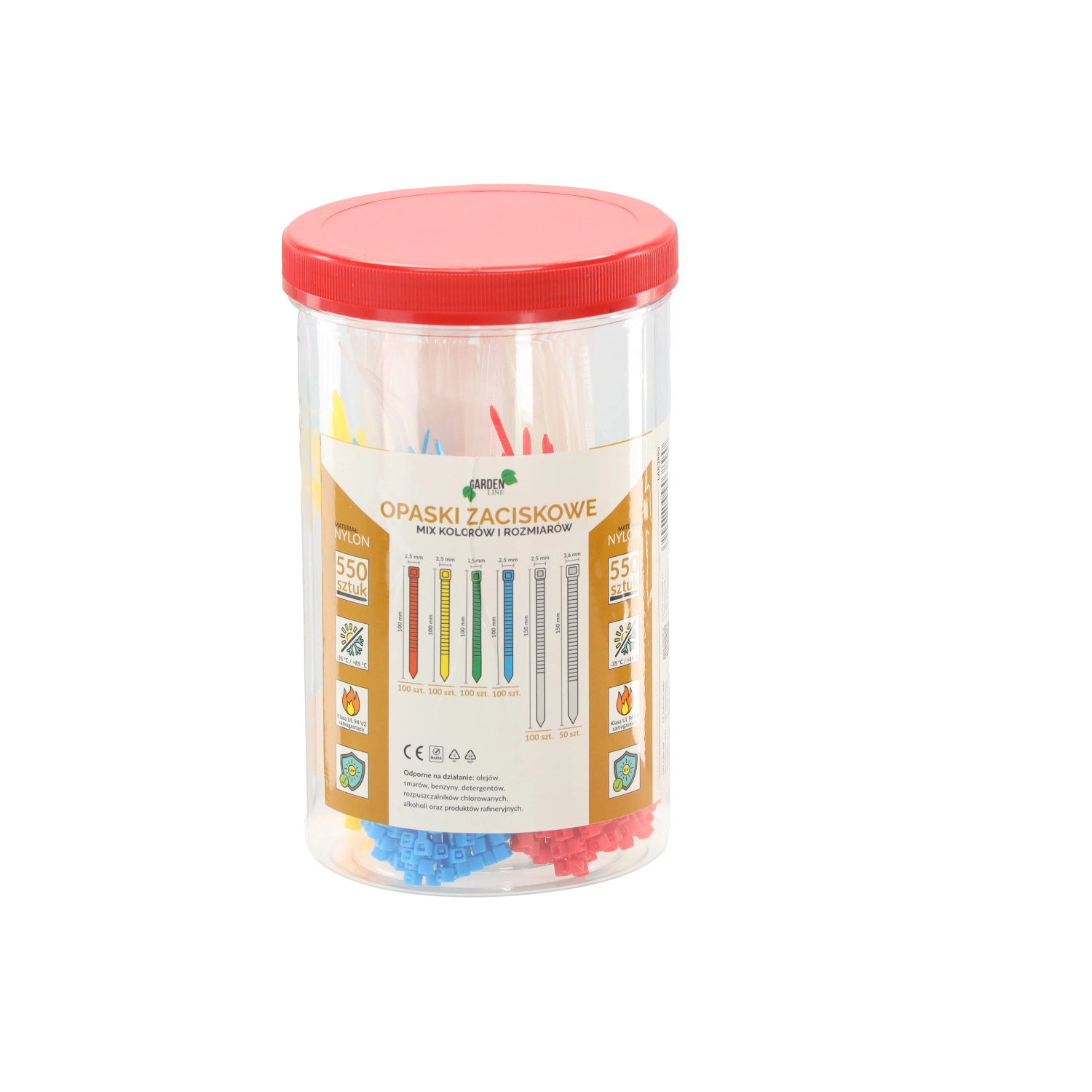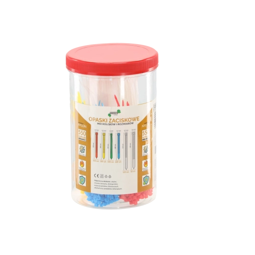 Univerzális készlet, amely 550 minőségi nejlon kábelkötegelőt tartalmaz praktikus tubusban. Vegyes színeket és méreteket kínál a gyors rendszerezéshez és felhasználáshoz otthon, a műhelyben és ipari környezetben. A kötegelők önkioltók (UL 94 V2), UV-állók és ellenállnak a vegyszereknek, széles hőmérséklet-tartományban alkalmazhatók, megbízható rögzítést biztosítva kábelekhez, csövekhez és kisebb alkatrészekhez.