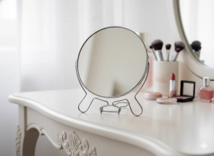 Átgondolt méretei kiváló rálátást biztosítanak, míg a minőségi felület világos és éles képet nyújt kellemetlen torzítás nélkül. A minimalista fekete kivitel könnyen illeszkedik bármely fésülködőasztalhoz és neszesszerhez.