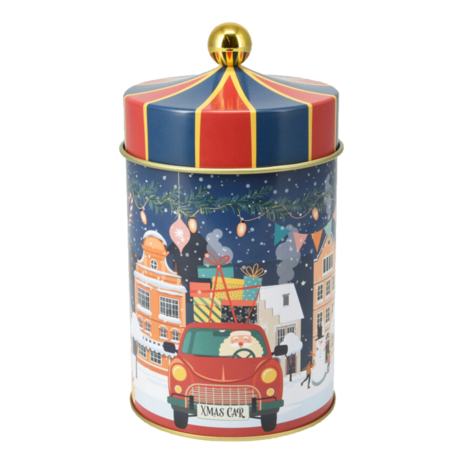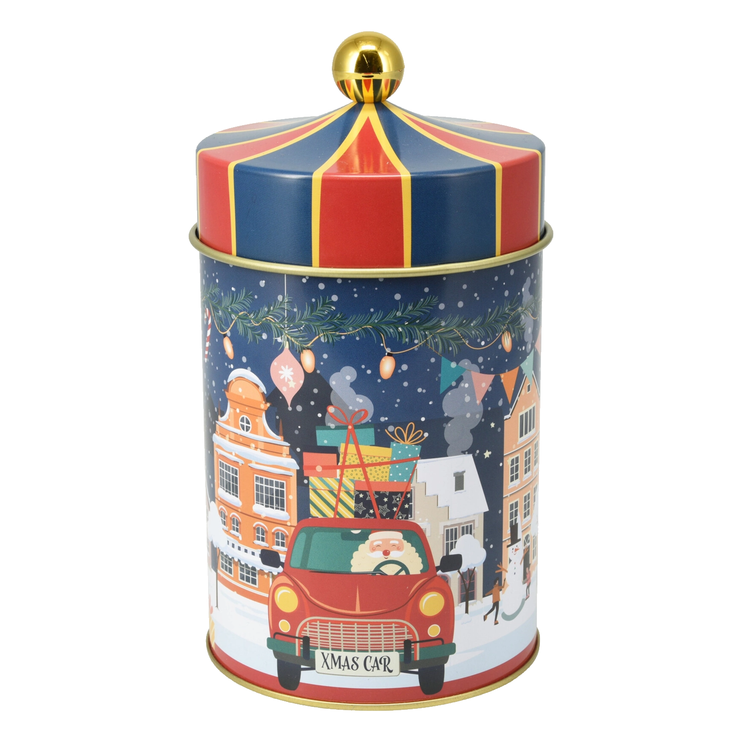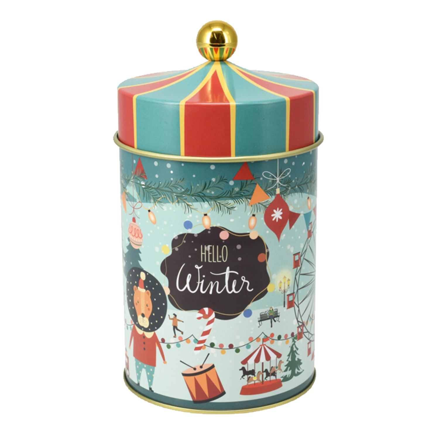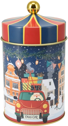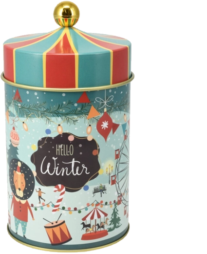 Ez a kerek fém doboz a praktikus tárolást hatásos téli dizájnnal ötvözi. A tartós fém kivitel és a jól illeszkedő fedél megóvja a finomságokat a nedvességtől és a levegőtől, így tovább maradnak ropogósak és illatosak. A kompakt méreteknek köszönhetően könnyen elhelyezhető a konyhapulton, a polcon vagy a kredencben.