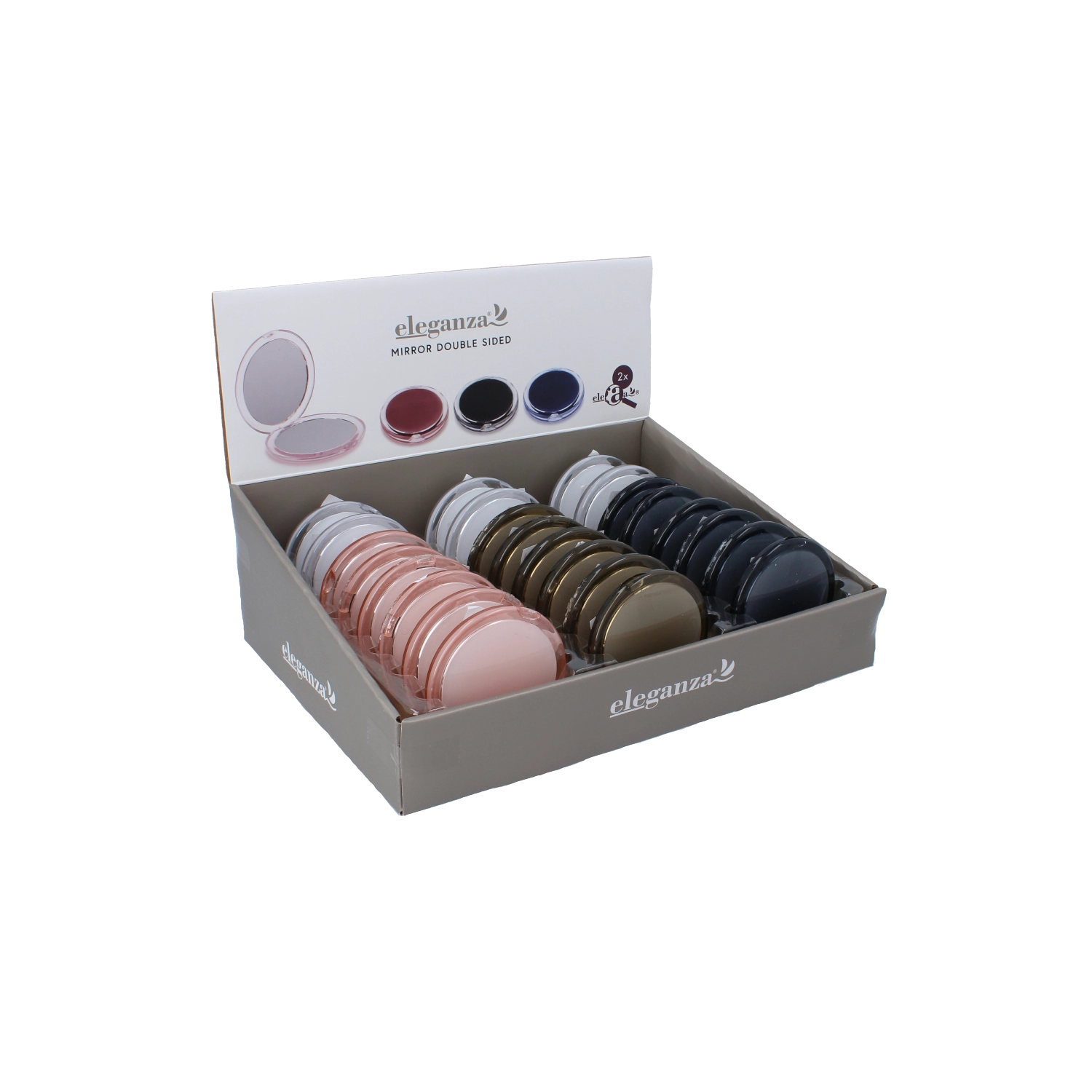 Két egymással szemben elhelyezett tükörfelület biztosít tiszta tükröződést a gyors ellenőrzéshez és a smink, illetve frizura részletes igazításához.
