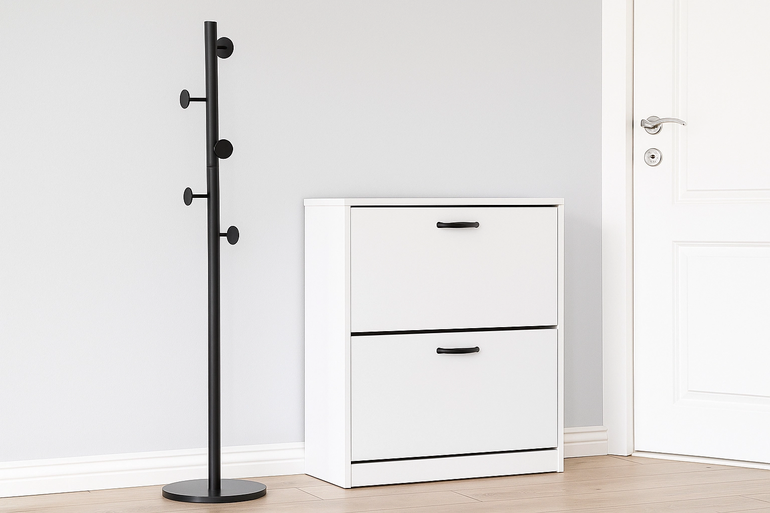 A Reda fogas stílusos kiegészítő bármely enteriőrbe. Minimalista sziluettje illik modern és klasszikus terekbe egyaránt, míg a kompakt alapterület helyet takarít meg az előszobában. A szabadon álló kialakítás nem igényel fúrást – egyszerűen oda állítható, ahol épp szükség van rá.