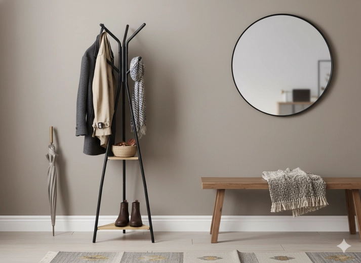 Stratégiailag elhelyezett akasztók a kabátoknak, sálaknak és táskáknak – minden kéznél van, gyűrődés nélkül.