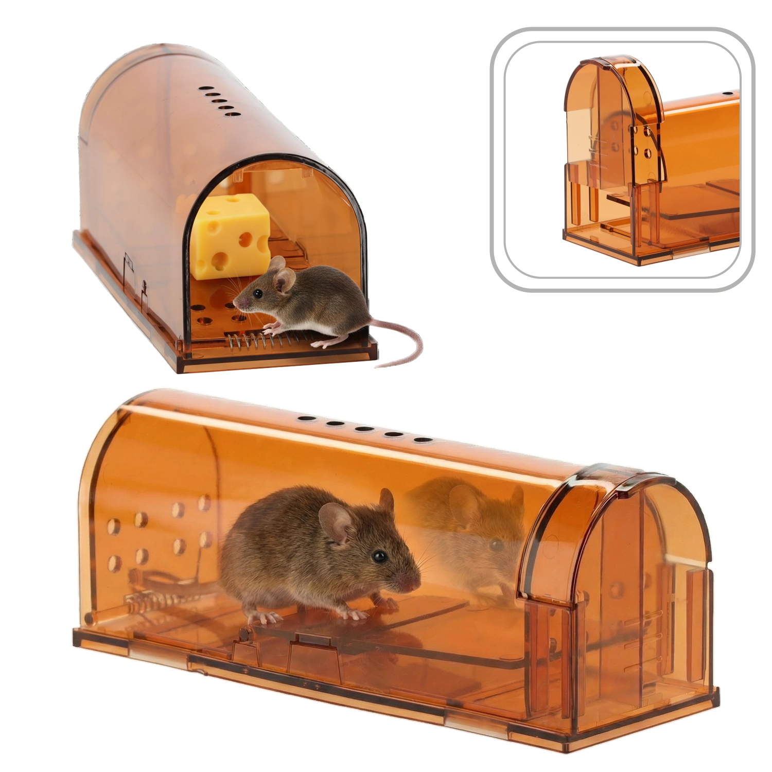 Az átlátszó falaknak köszönhetően azonnal látható, befogásra került-e a rágcsáló, a csapda kinyitása nélkül. Időt takarít meg és növeli a biztonságos kezelést.