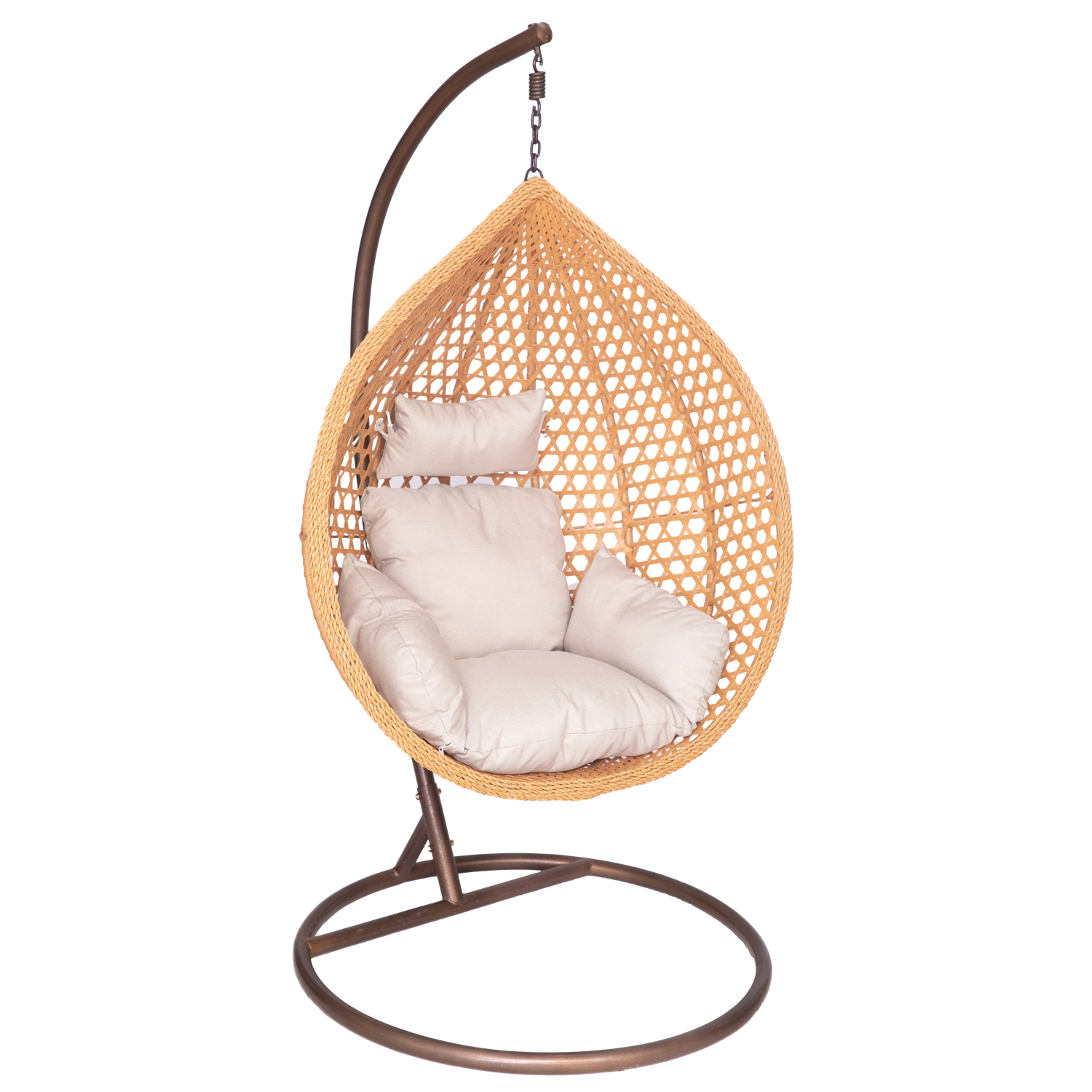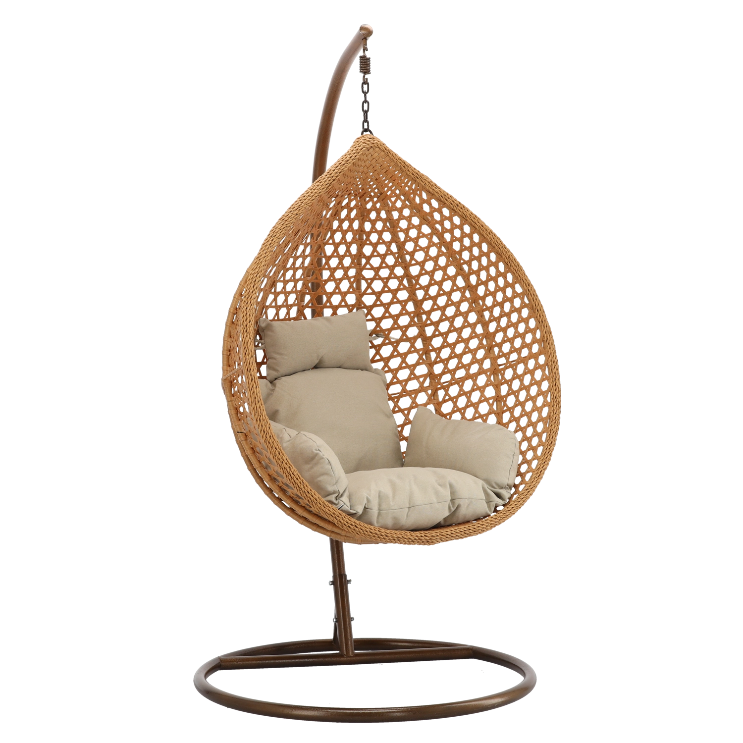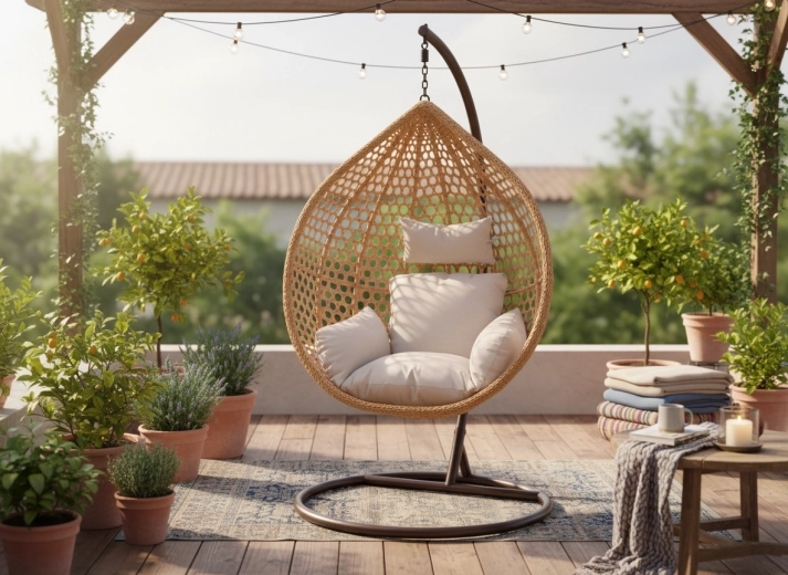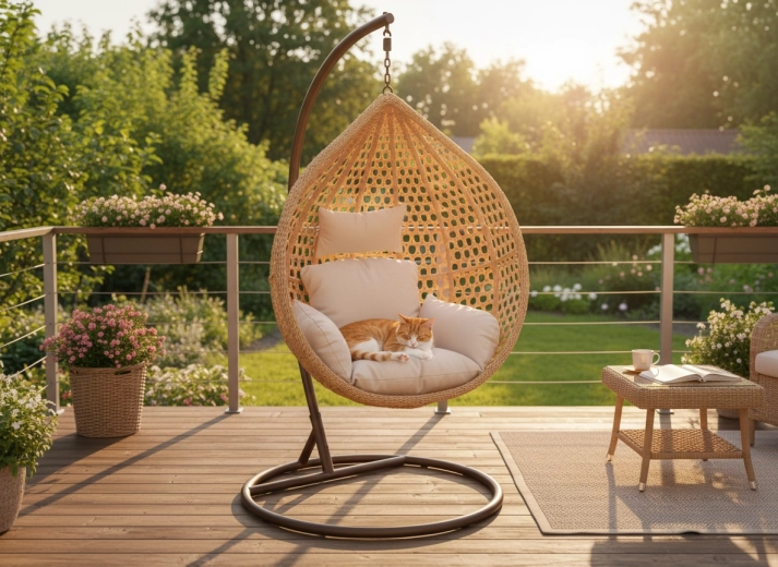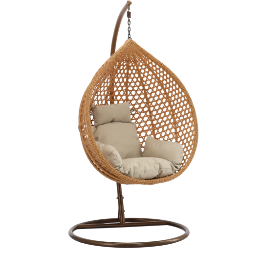 Fedezze fel a kényelmet és a stílust egyben – a tojás alakú függőfotel tágas kosarával meghitt ülőhelyet kínál a mindennapi pihenéshez. A fonat természetes megjelenése remekül illik a modern és klasszikus kültéri és beltéri terekhez, miközben a puha párnázat támaszt nyújt a hátnak és a fejnek.