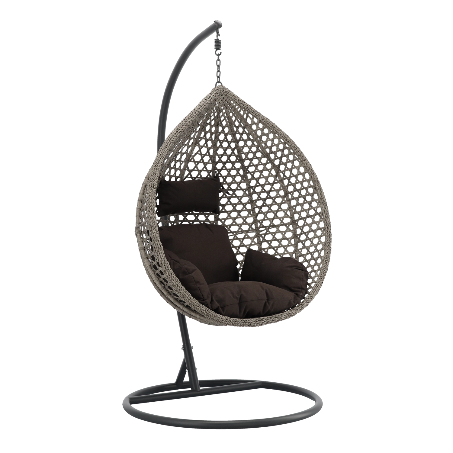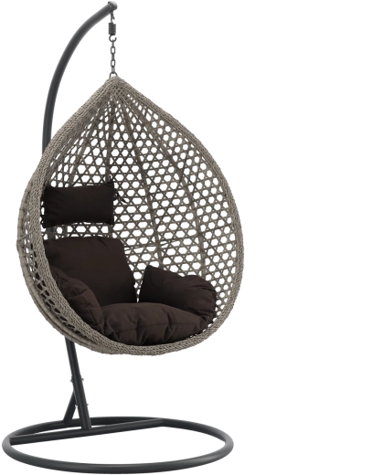 A stílusos, egységes szürke színű függőfotel nyugodt hangulatot és kényelmet hoz minden teraszra, erkélyre és nappaliba. A masszív sötétszürke váz biztosítja a stabilitást és a biztonságos ringatózást, a tágas kosár puha párnái pedig pihenésre hívnak. Időtálló dizájnjának és tartós anyagainak köszönhetően ideális relaxációhoz és mindennapi használatra, beltérben és kültéren egyaránt.