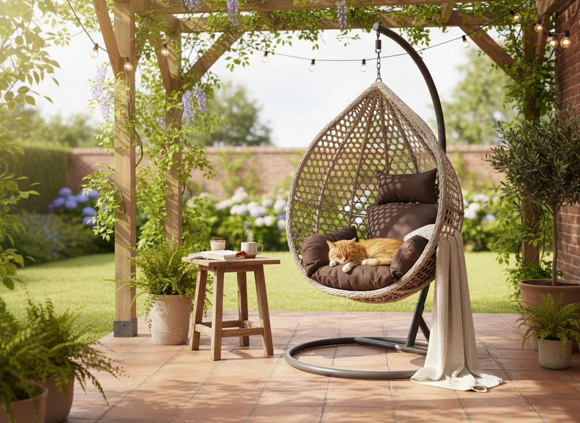 - Biztonságos kialakítás: stabil fém váz és tartós anyagok kültéri és beltéri használatra.
