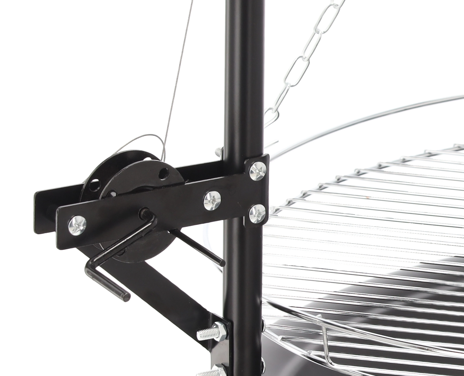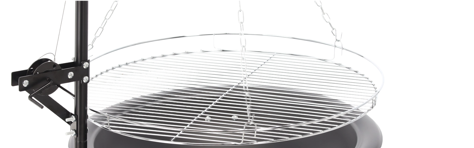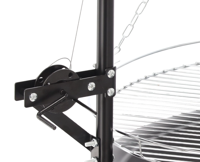 Az 50 cm átmérőjű, krómozott, kör alakú rács bőséges helyet ad az egész család számára. A rács emelésének egyszerű vezérlése (láncok/kar a kivitel szerint) lehetővé teszi a precíz grillezést odaégés nélkül. A letisztult, fém dizájn bármely kertbe, nyaralóba vagy teraszra illik.