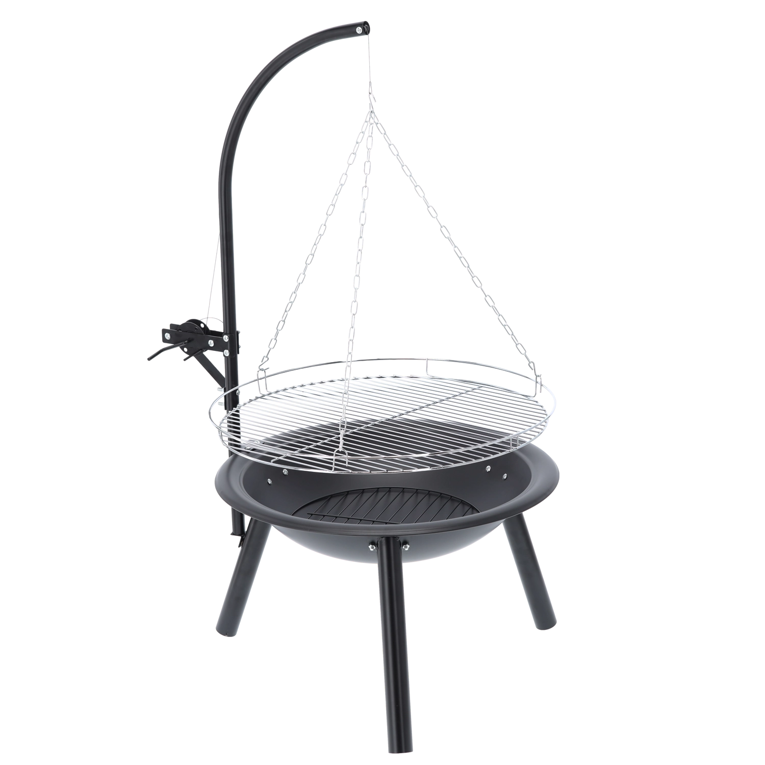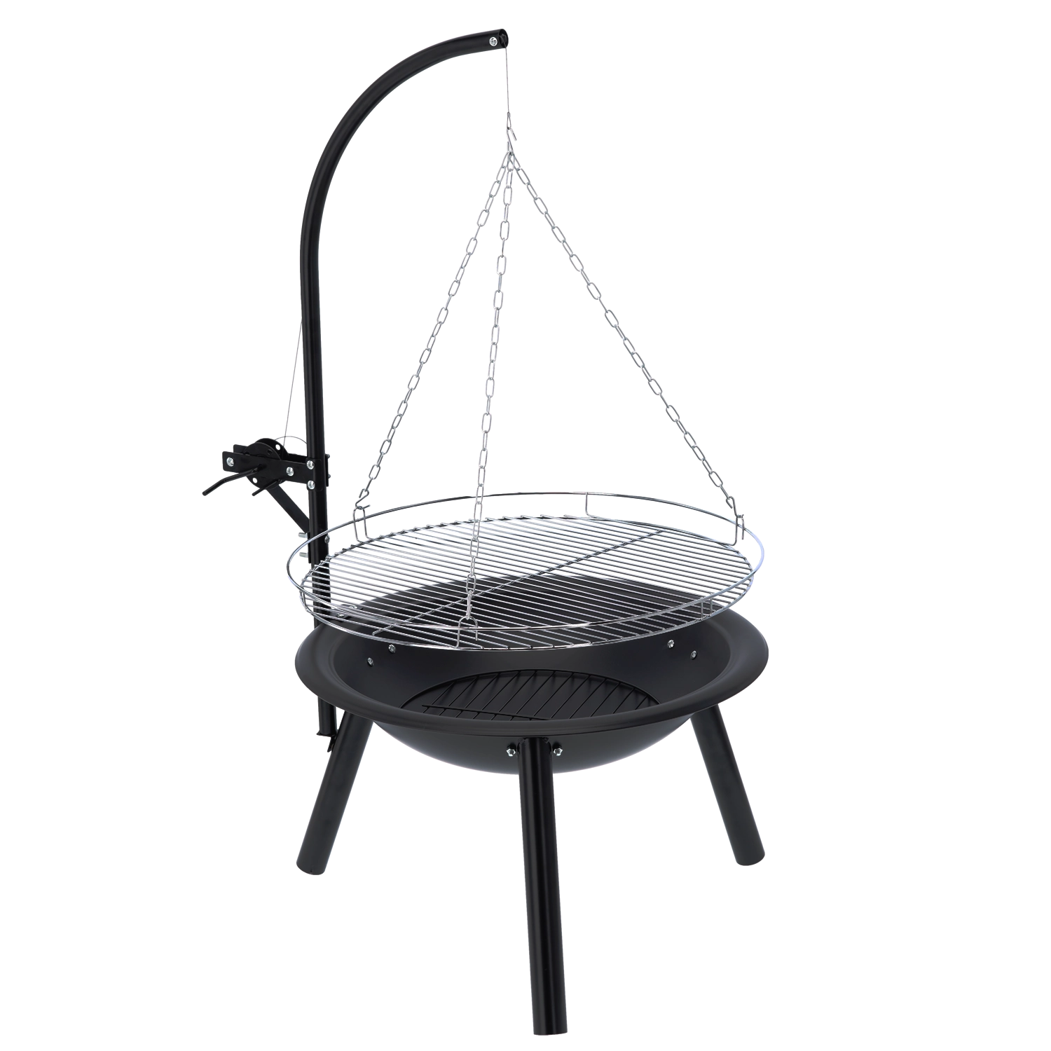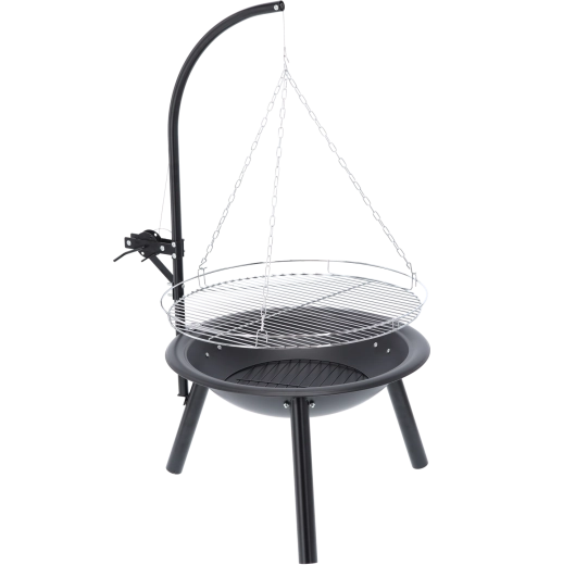 Élvezd a nyílt tűz fölött készült ételek autentikus ízét. A függesztett grill a hagyományos tűzhely hangulatát ötvözi a magasságában állítható rács praktikusságával, így könnyedén a különböző húsokhoz, zöldségekhez és sajtokhoz igazíthatod a hő intenzitását. A stabil háromlábas állvány és a masszív tűztál biztonságos használatot és hosszú élettartamot biztosít.