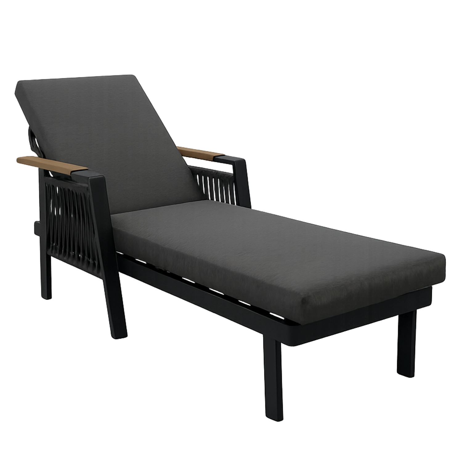 A 8 cm vastag párnázat kényelmes ülést és fekvést biztosít. A kerek zsinórból készült oldalsó fonat és a polywood kartámasz elemek modern megjelenést és praktikus tartósságot adnak.