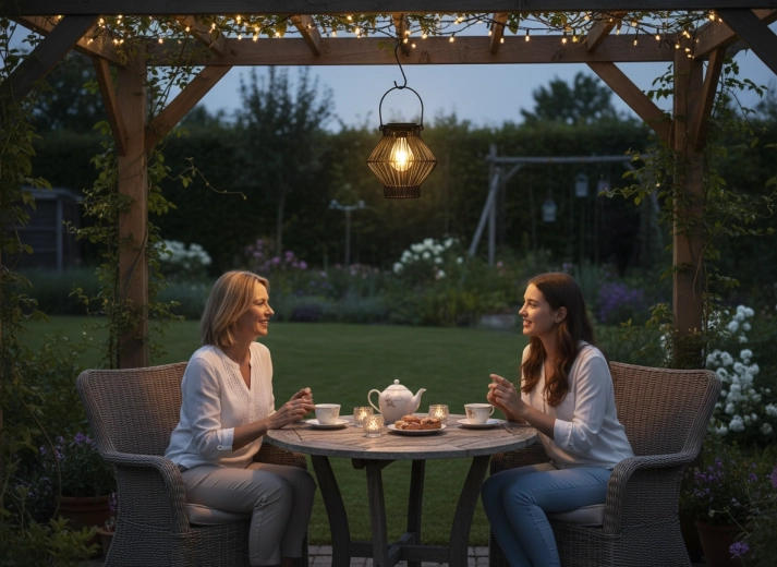A beépített LED izzó kellemes, meleg, ambient fényt ad – ideális esti beszélgetésekhez, romantikus pillanatokhoz és kerti összejövetelekhez.