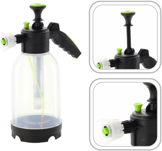 Professzionális, 2 literes kézi habosító a tisztítószerek gyors és precíz felhordásához. A strapabíró kialakításnak, a magas vegyi ellenállásnak és a minőségi tömítéseknek köszönhetően hosszú ideig tartja a nyomást, ami állandó és egyenletes habkibocsátást biztosít. Két cserélhető fúvóka – permetező és habképző – teszi lehetővé a sűrűség és az alkalmazás módjának testreszabását műhelyben, autómosóban, takarításnál és otthon.
