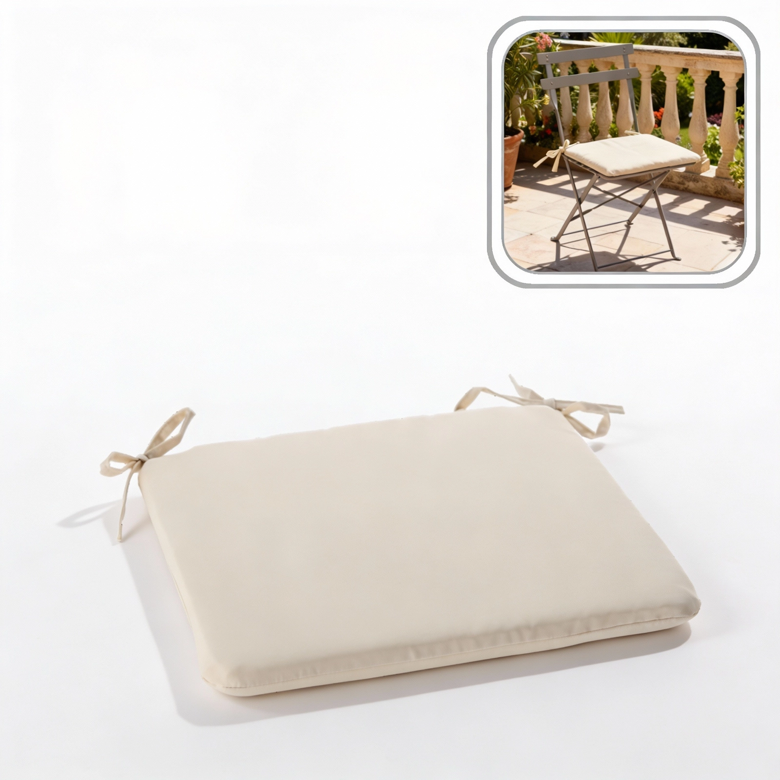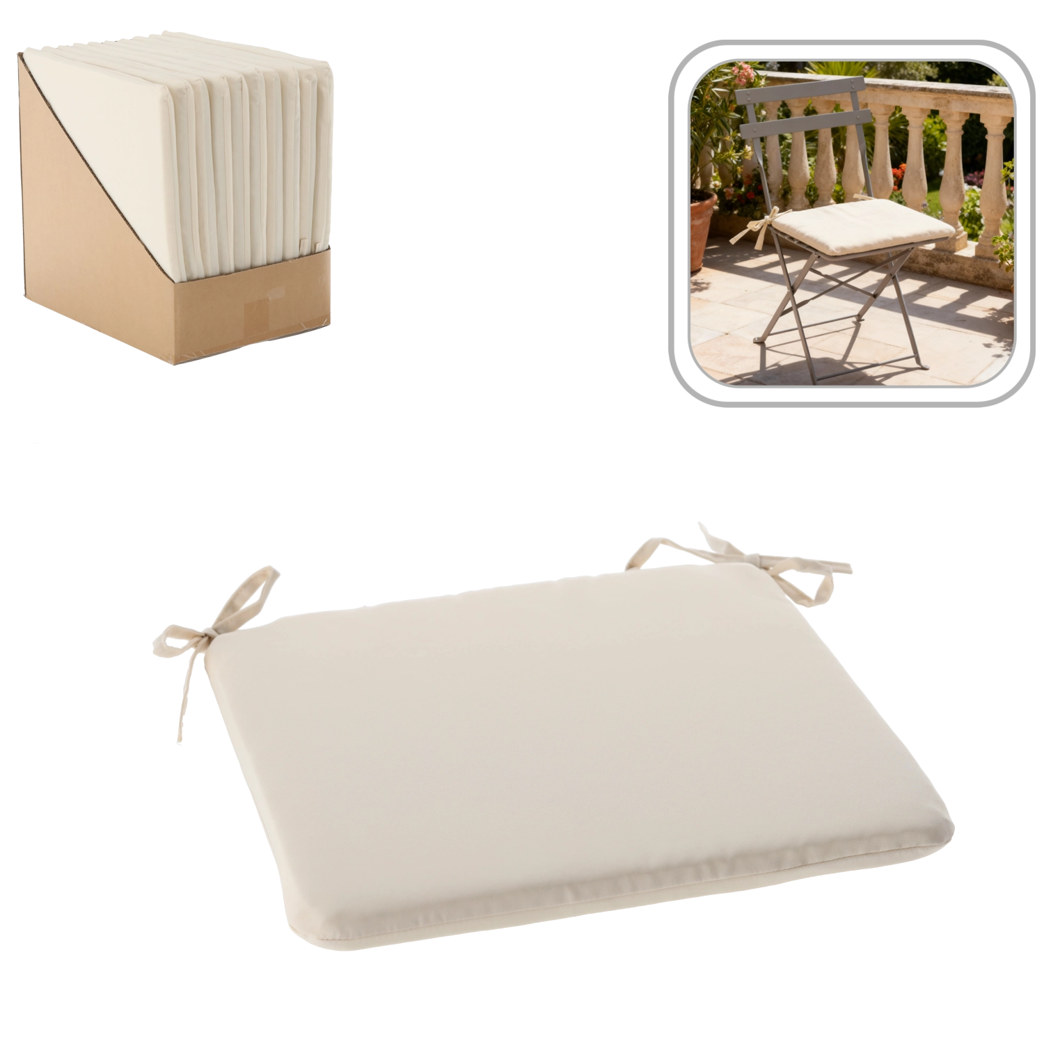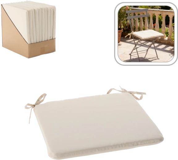 Adj több kényelmet és stílust székeidnek és kerti ülőhelyednek ezzel a 40 × 40 × 3 cm-es bézs ülőpárnával. A puha töltet kényelmes ülést biztosít, a praktikus kötőzsinórok a helyén tartják a párnát, a cipzár pedig könnyű tisztítást tesz lehetővé. Az anyag enyhe fröccsenésállósága miatt beltérre és teraszra egyaránt ideális.