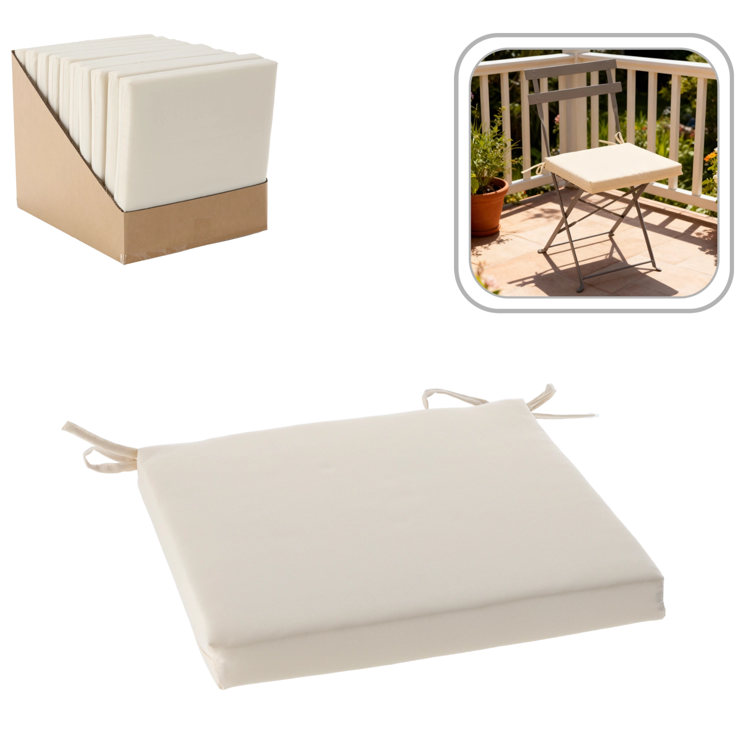 Adjon több kényelmet és stílust az üléshez ezzel a bézs székpárnával, 40 × 40 × 5 cm méretben. A puha poliészter szál kellemes ülést biztosít, az foltoknak ellenálló anyag megkönnyíti a karbantartást, a kötőzsinórok pedig biztonságosan a helyén tartják a párnát.