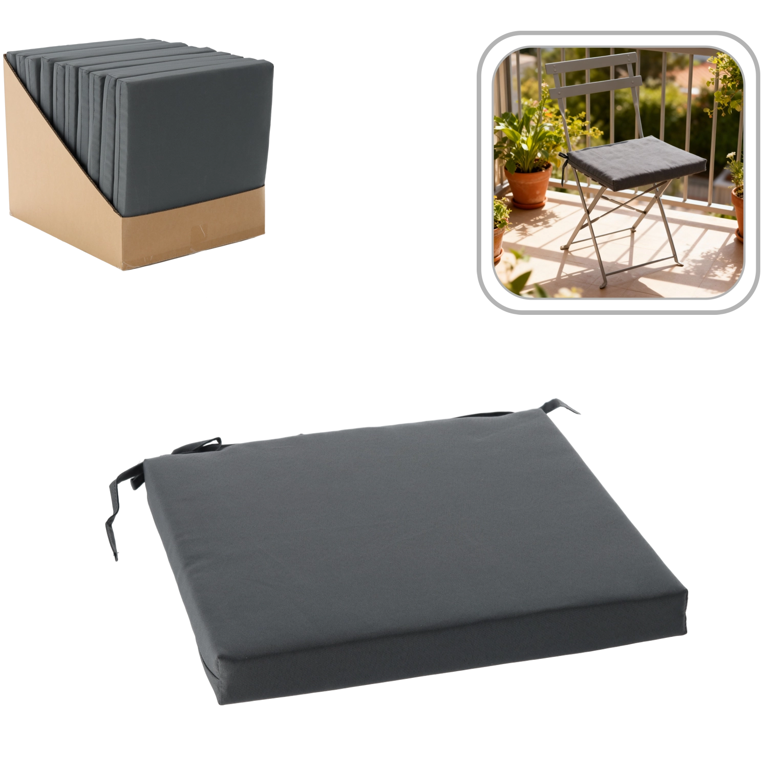 Emelje új szintre az ülőkomfortot a 40 × 40 × 5 cm-es, elegáns sötétszürke, univerzális ülőpárnával. A fröccsenő víznek ellenálló, tartós textil és a kellemesen puha párnázat mindennapos beltéri és kültéri használat során is kényelmet biztosít. A beépített zsinórok gyors és biztonságos rögzítést tesznek lehetővé a legtöbb székhez.