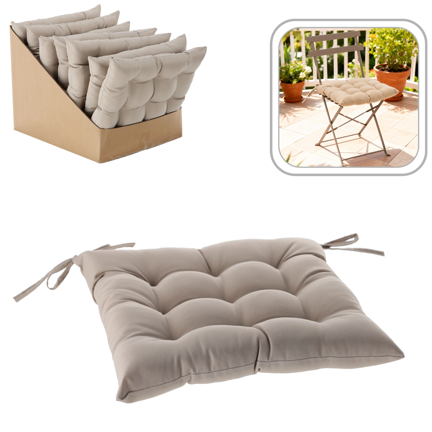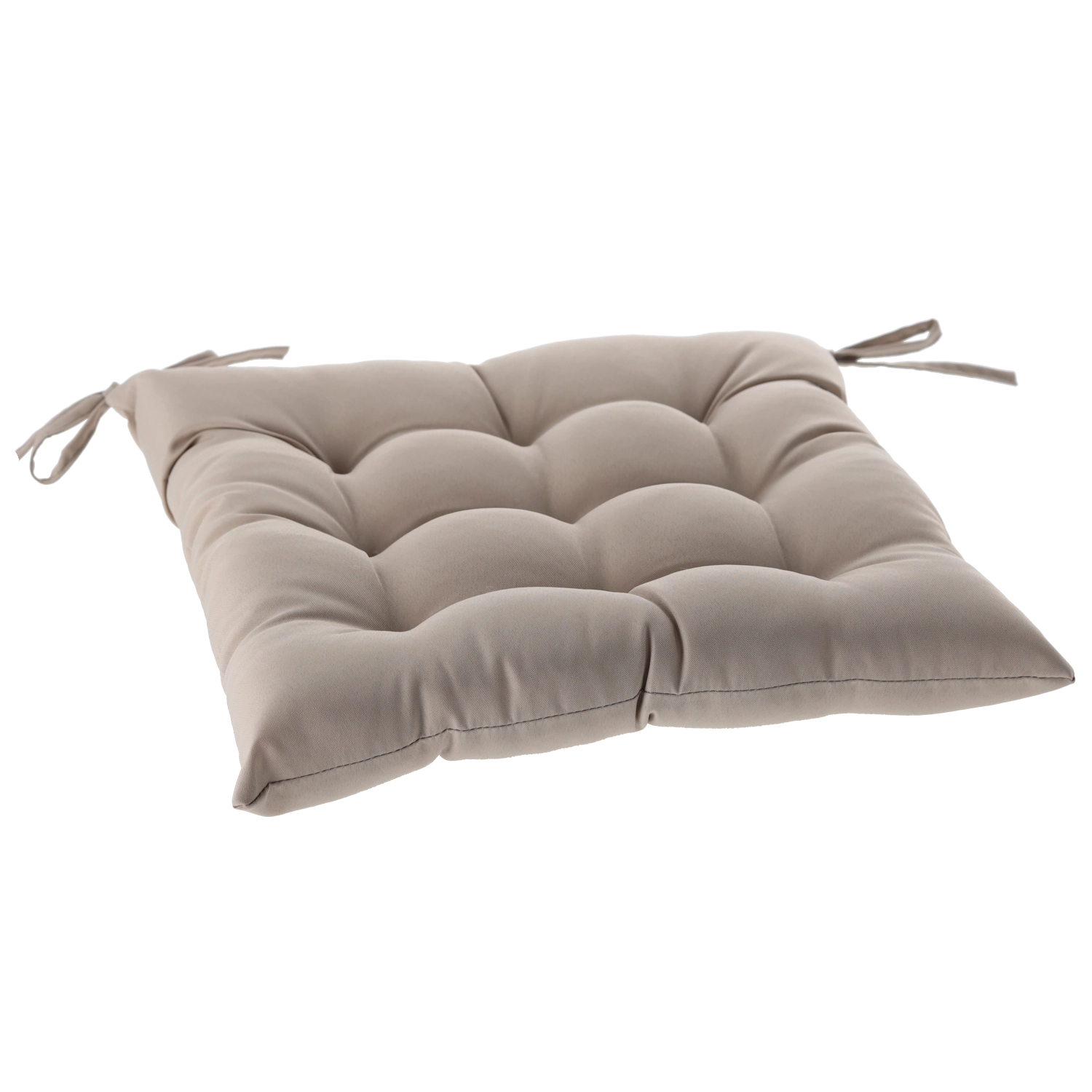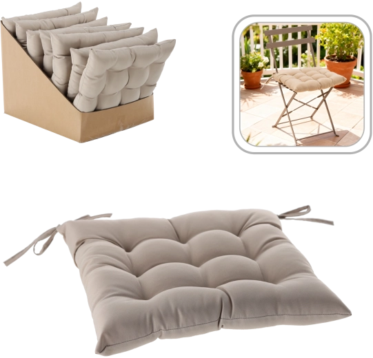 Stílusos, természetes színű ülőpárna a mindennapi kényelemért otthon és a teraszon. A 9 pontos steppelésnek és a 6 cm vastag párnázásnak köszönhetően stabil tartást és kellemes ülésélményt nyújt. A strapabíró poliészter huzat és a praktikus megkötő zsinórok a helyén tartják a párnát és növelik élettartamát.
