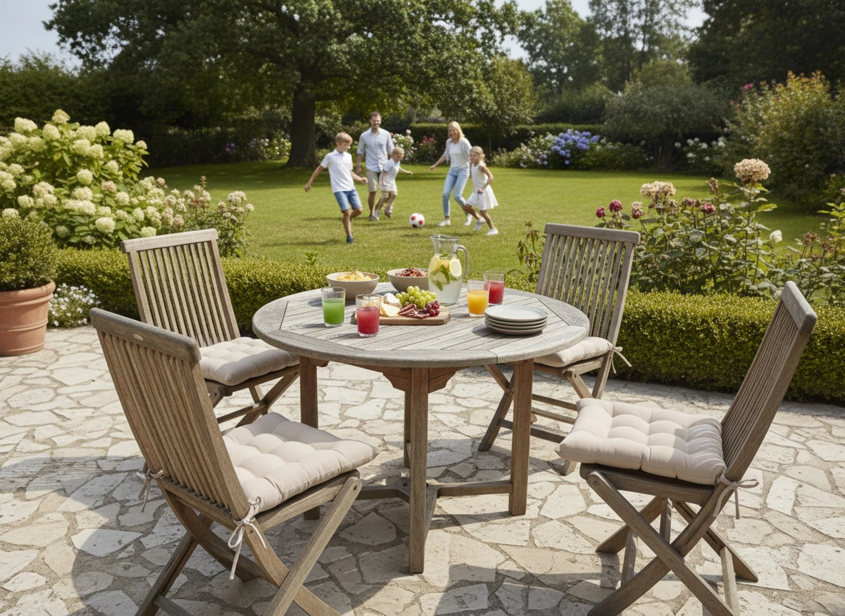 A sűrű poliészter szálas töltet kényelmes és stabil ülést biztosít nyomáspontok nélkül – ideális étkezőasztalhoz és erkélyre is.