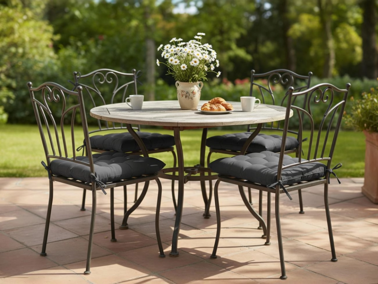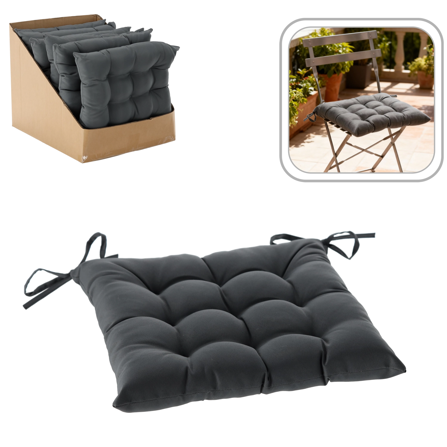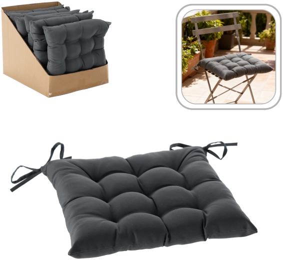 A 6 cm-es magasság kellemes, puha ülést nyújt hosszabb használat során is. A párna 2 rögzítő zsinórral van felszerelve, amelyek megakadályozzák az elcsúszást. A 100% poliészterből készült tartós huzatnak köszönhetően otthoni és alkalmanként kültéri használatra is alkalmas.