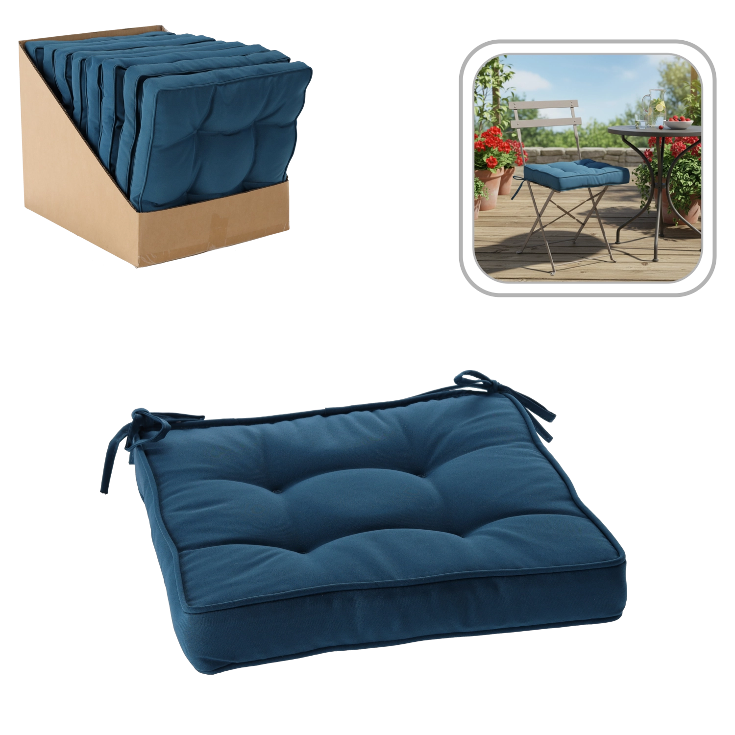 A praktikus zsinórok a székhez kötéshez megakadályozzák az elcsúszást, így a párna pontosan ott marad, ahol szüksége van rá. A kék árnyalat könnyen összehangolható fa bútorokkal és modern enteriőrrel, a kerti ülőhelyeken pedig kellemes, kényelmes hangulatot teremt.