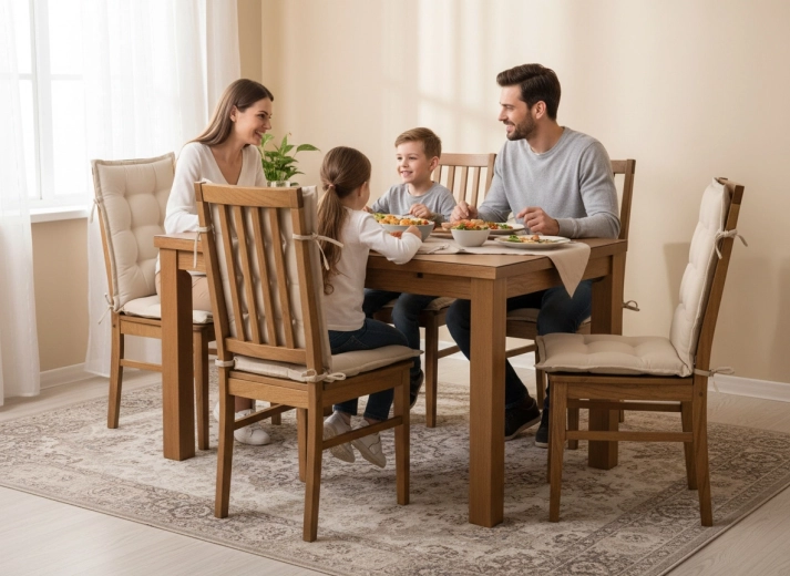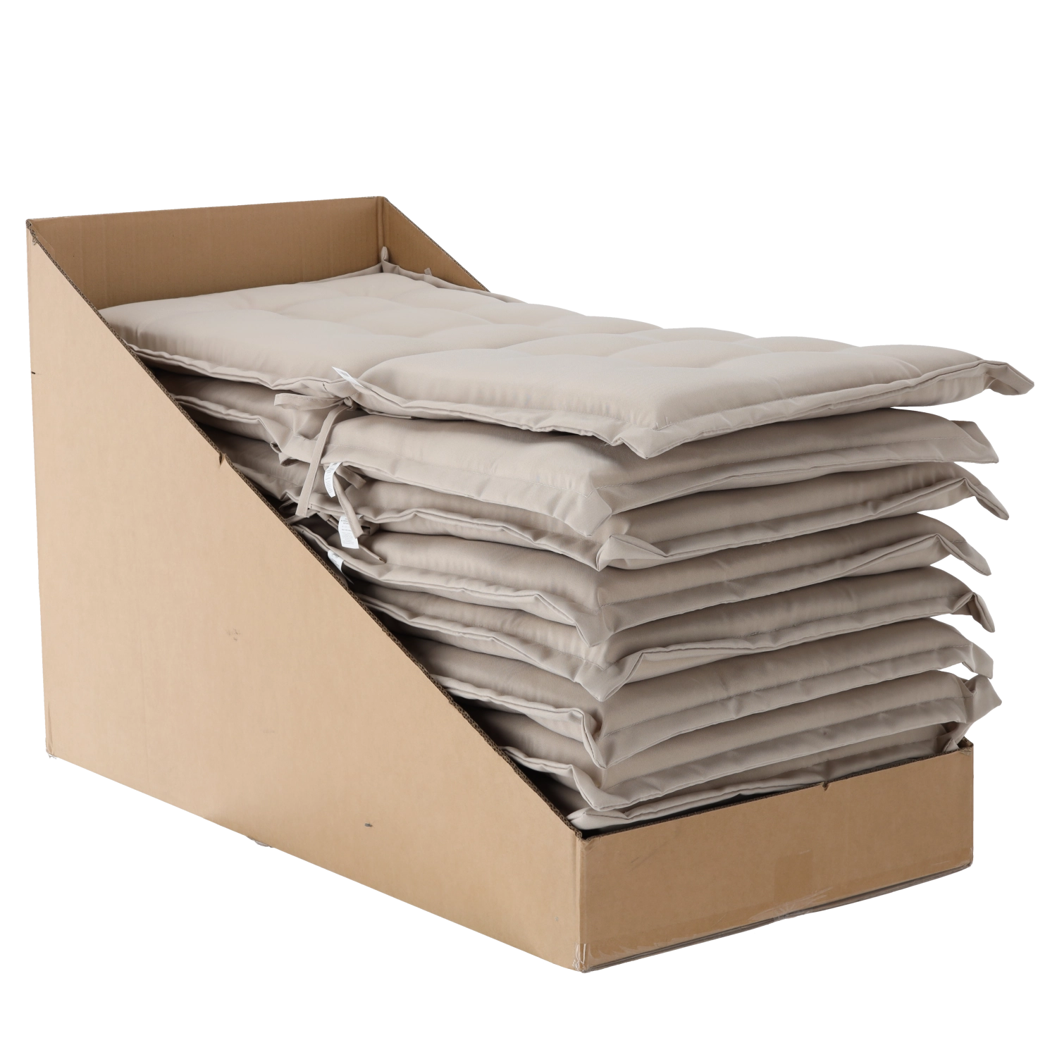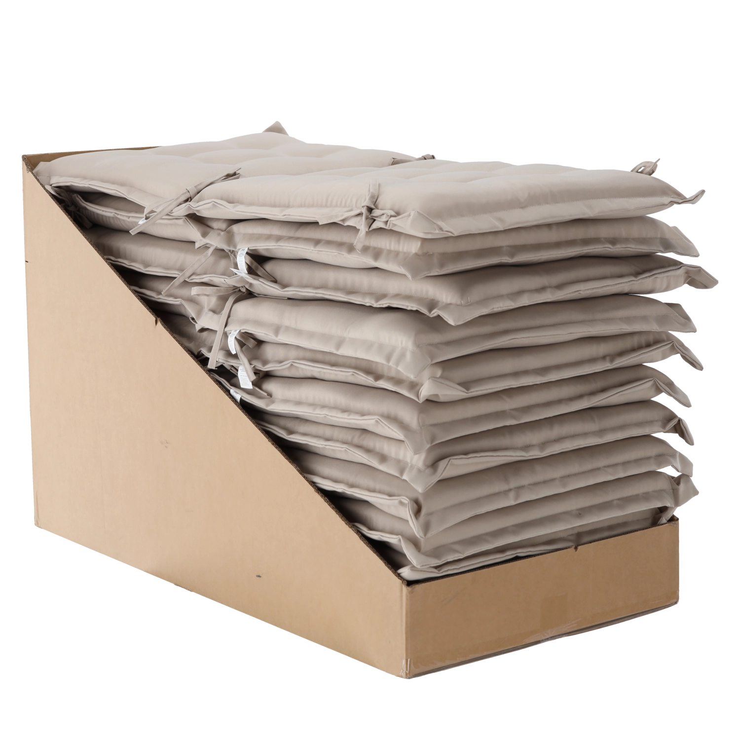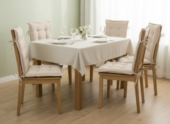 Az átgondolt steppelés – 6× a háttámlán és 4× az ülőlapon – egyenletesen tartja a töltetet és elegáns megjelenést biztosít. A négy zsinór a szélekén gyors és stabil rögzítést tesz lehetővé a legtöbb széken, így a párna pontosan a helyén marad.
