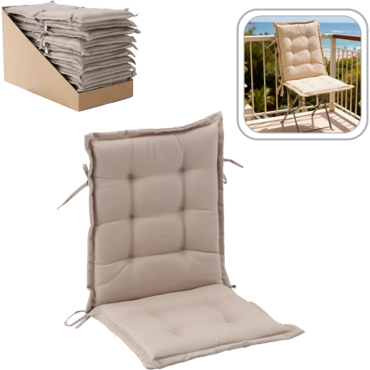 Adjon székeinek új szintű kényelmet és stílust. Ez a természetes ülőpárna beépített háttámasszal teljes felületű párnázást biztosít, vízlepergető poliészterből készült, és a 10 ponton végigfutó steppelésnek köszönhetően remekül tartja a formáját. Négy megkötő zsinór gondoskodik a biztos rögzítésről elcsúszás nélkül.