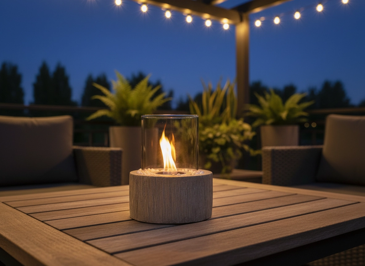 A lágy fény megnyugtató tűz-élményt kelt – tökéletes esti pihenéshez otthon és a teraszon is, füst és kellemetlen szagok nélkül.