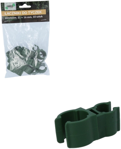Praktikus, 10 darabos forgó csatlakozókészlet 11 mm és 16 mm átmérőjű pálcákhoz, amellyel gyorsan hozhat létre stabil rácsokat, lugasokat és támaszokat a növényei igényeihez igazodva. A forgó mechanizmusnak köszönhetően könnyedén állíthat különböző kötési szögeket, míg a tartós műanyag ellenáll az esőnek, szélnek és napsütésnek. A zöld szín természetesen beleolvad az ágyásba, a többszöri felhasználás pedig időt és pénzt takarít meg.
