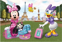 Ez a puzzle gyönyörű illusztrációkat tartalmaz Minnie egérről és Daisy kacsáról az Eiffel-toronnyal a háttérben. Ideális a Disney rajongók számára.