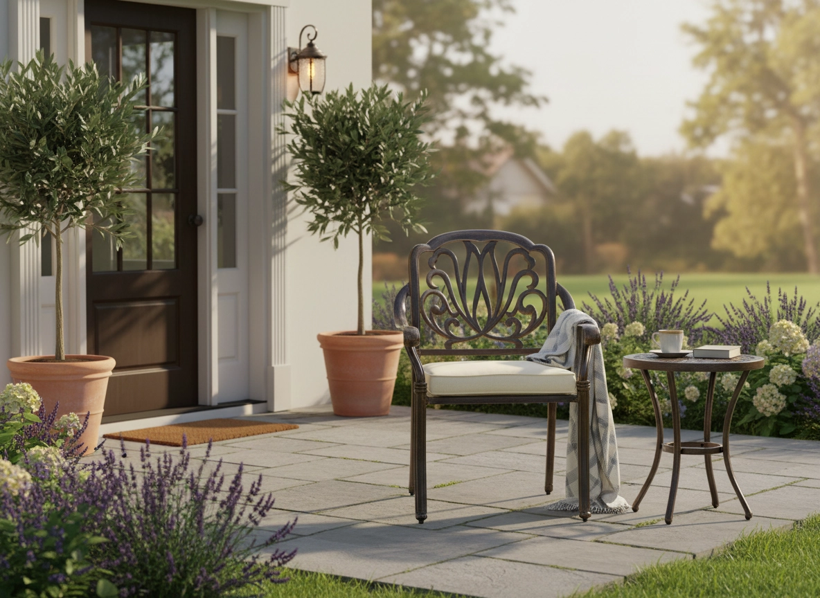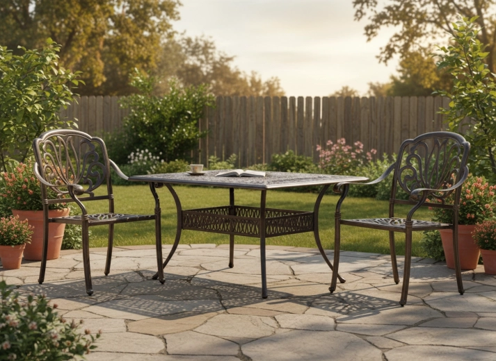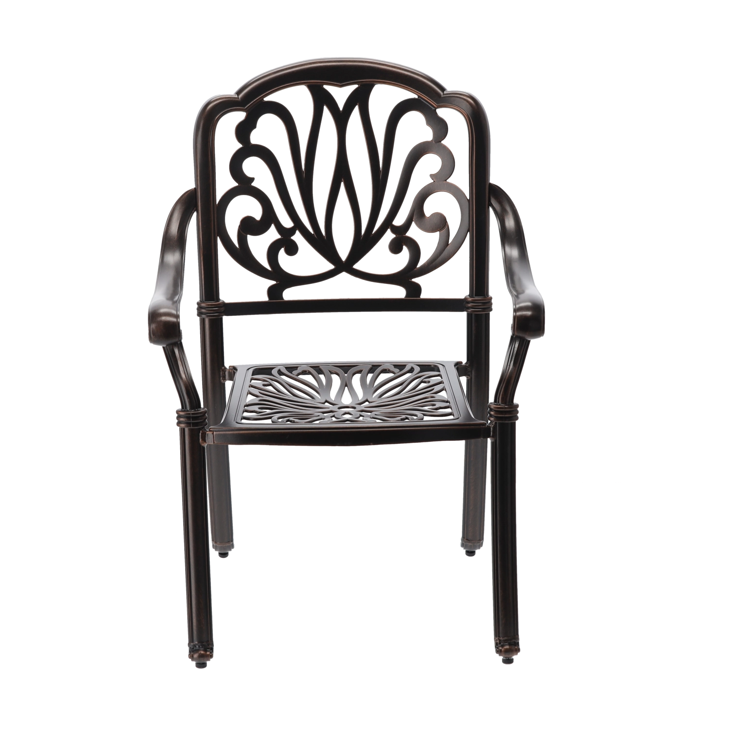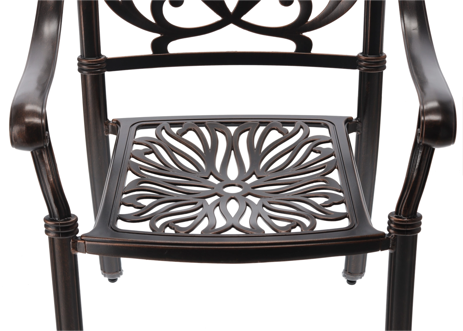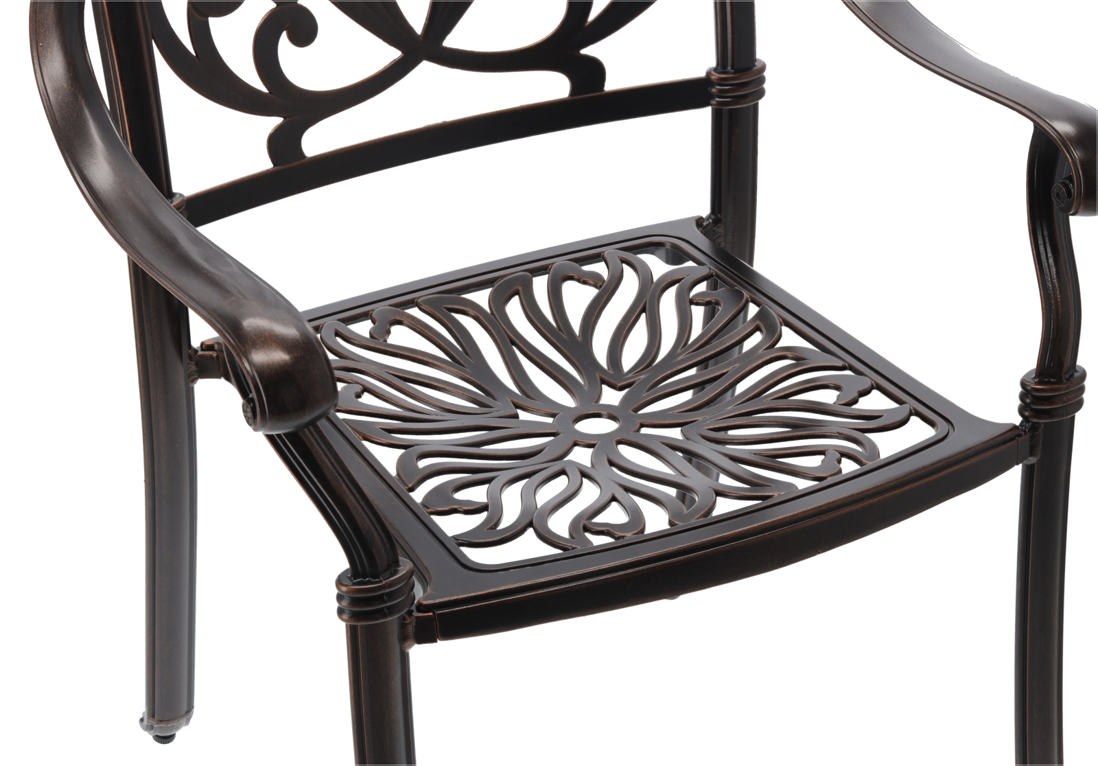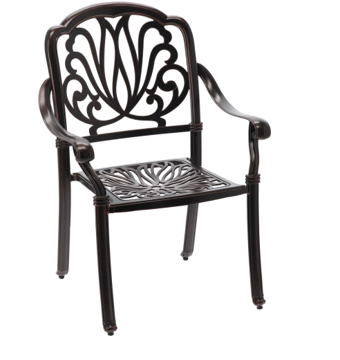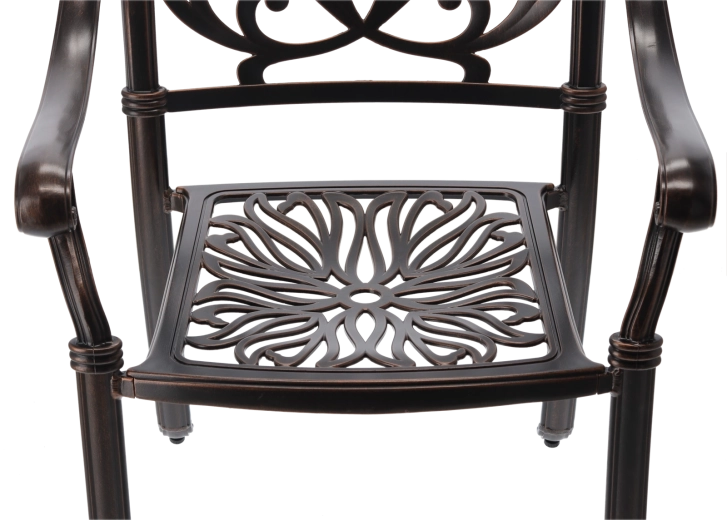A tartós felület elegáns antik bronz árnyalatban véd az időjárástól és a karcoktól, miközben kiemeli a szék klasszikus megjelenését.