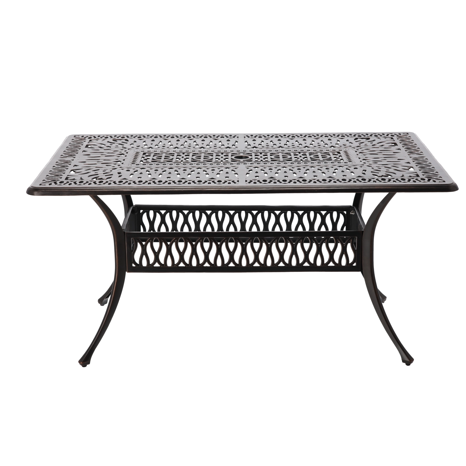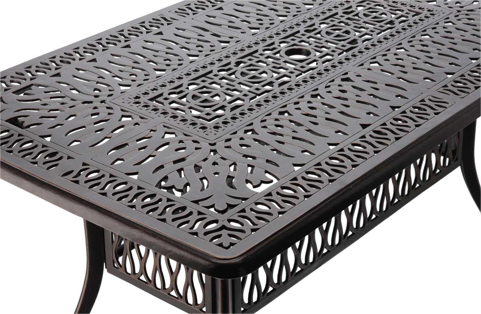 A Hastings asztal időtálló darab a kültéri ülőhelyekhez. A strapabíró alumínium szerkezetnek köszönhetően könnyű, mégis masszív, a porszórt felületkezelés pedig magas fokú időjárás- és korrózióállóságot biztosít. Az antik bronz szín finom réz hatással elegáns karaktert ad a teraszának.