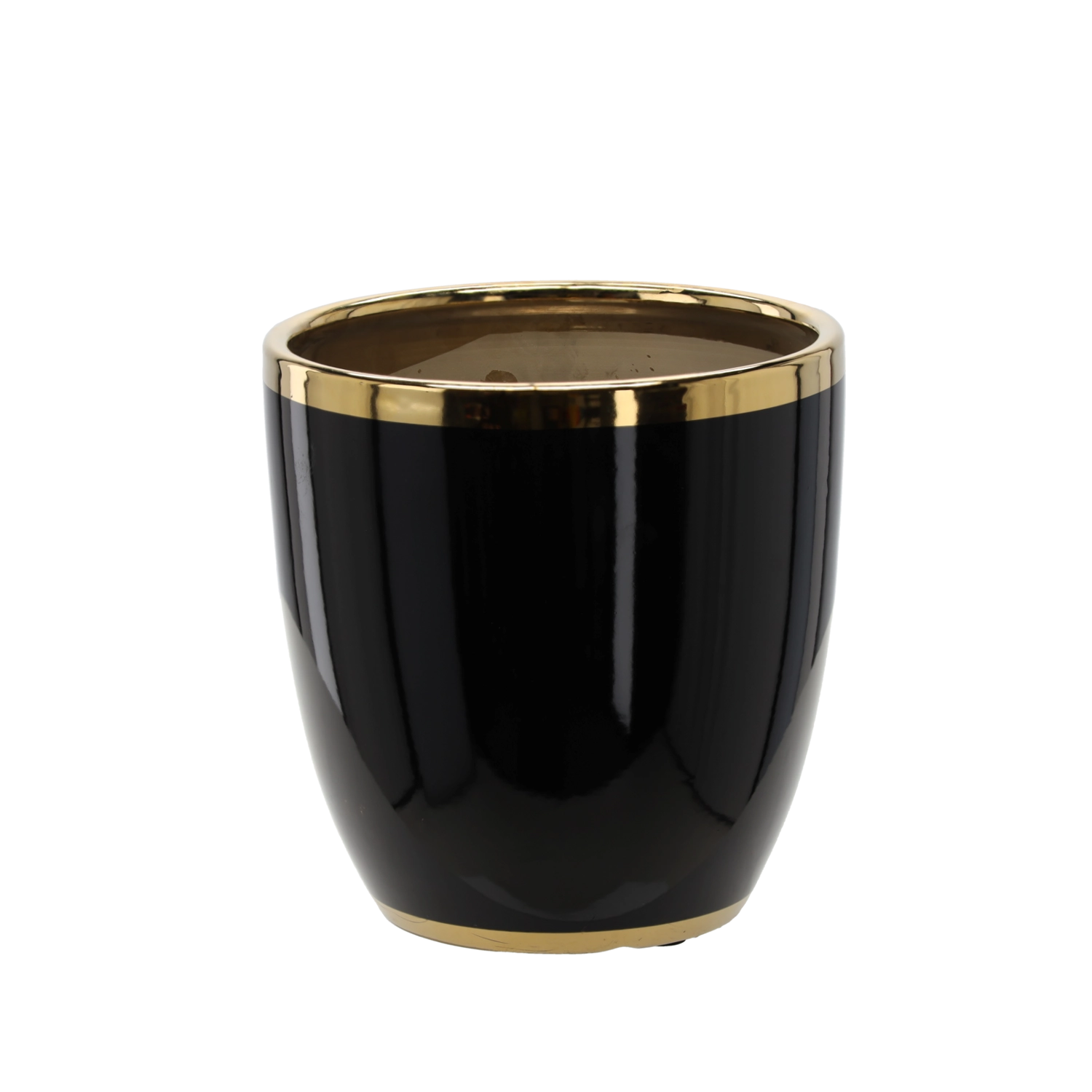 Elegáns, fekete színű kerámia kaspó arany szegéllyel, amely luxusos hangulatot kölcsönöz az enteriőrnek. A minőségi kivitel és a −10 °C-ig tartó ellenállás hosszú élettartamot és könnyű karbantartást biztosít.