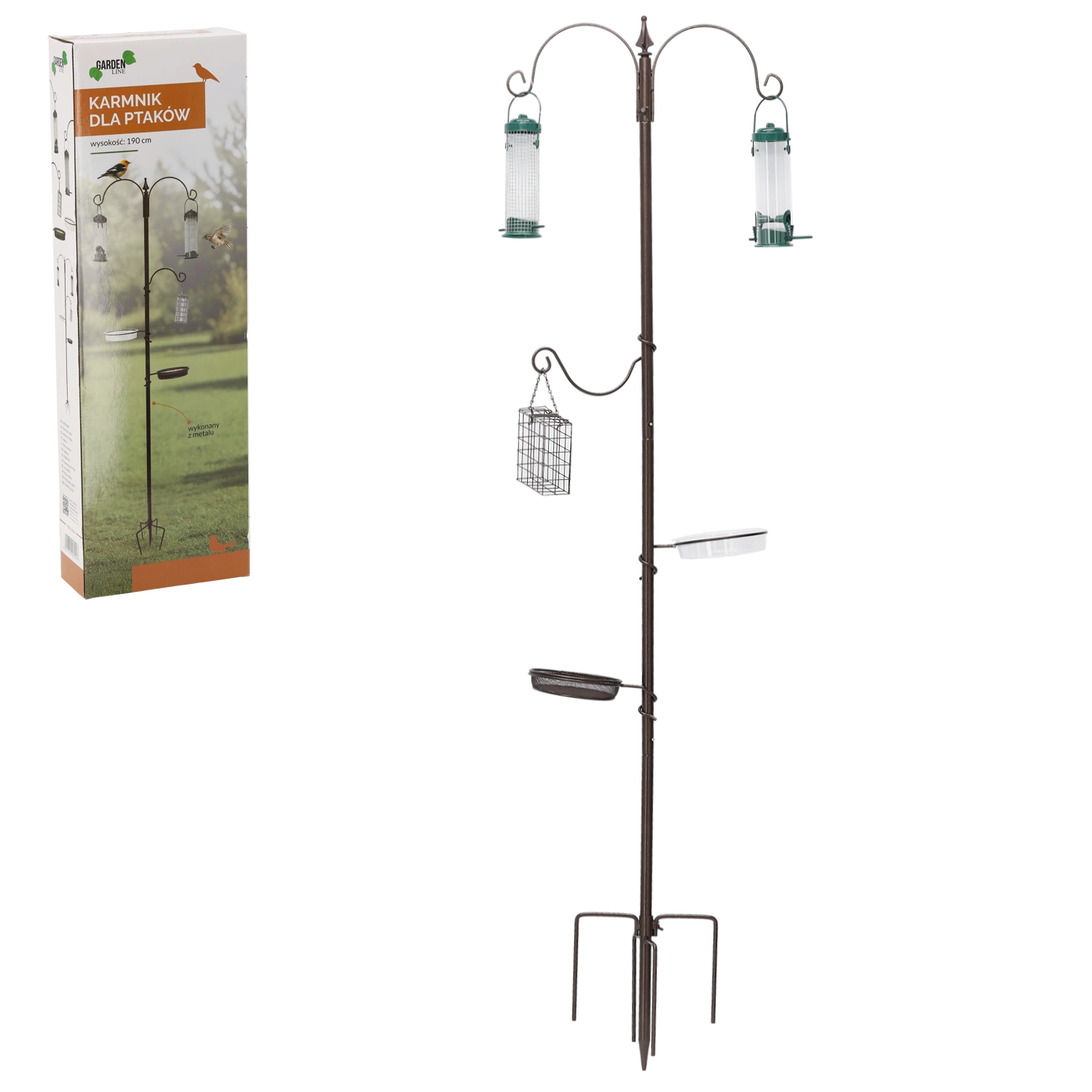 Elegáns, 190 cm magas kerti madáretető, ideális a vadon élő madarak egész éves gondozásához. Magasságának köszönhetően biztonságos etetőhelyet kínál a madaraknak, és lehetővé teszi a kényelmes megfigyelést. A rozsdamentes acélból készült stabil szerkezet időjárásállóságot, hosszú élettartamot és szilárd stabilitást garantál a csomagban található horgonyoknak köszönhetően. A multifunkciós megoldás lehetővé teszi különféle táplálékok és víz kihelyezését, és könnyű szerelésével, illetve szétszerelésével örömet okoz.