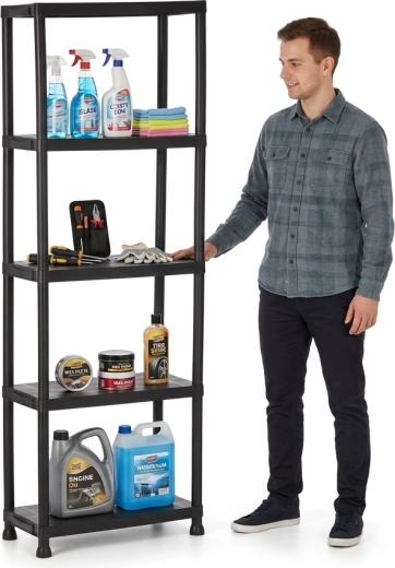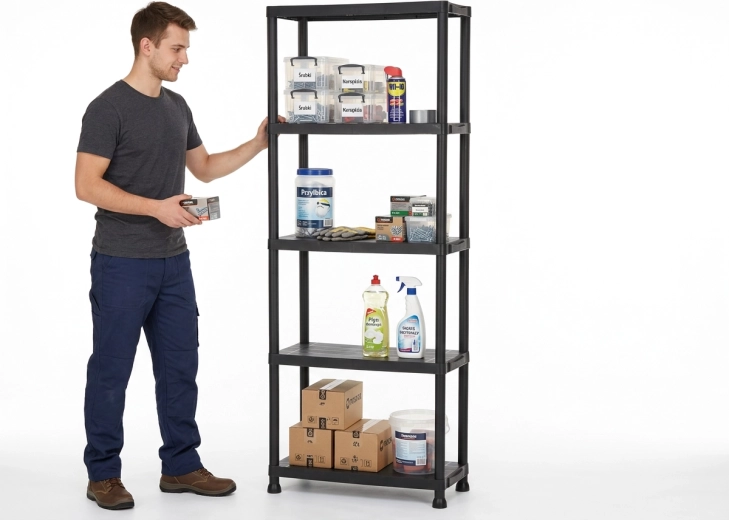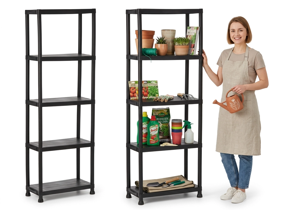 A polc ideális garázsba, gépészeti helyiségbe, pincébe és kerti felszerelésekhez is. A műanyag kivitel ellenáll a nedvességnek, könnyen tisztítható és könnyű a hordozása. Az egyszerű szerelés speciális szerszámok nélkül időt takarít meg – a polcot pillanatok alatt felállíthatja.