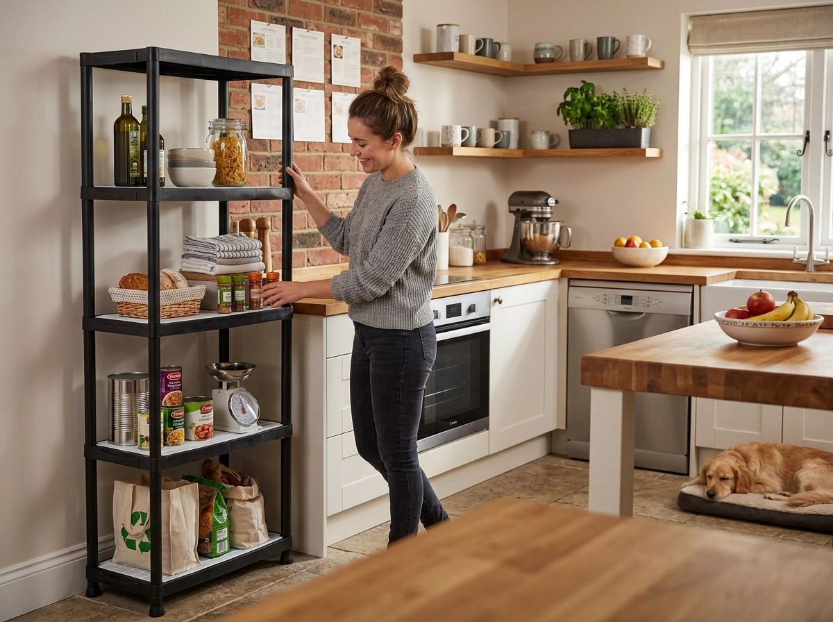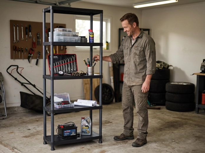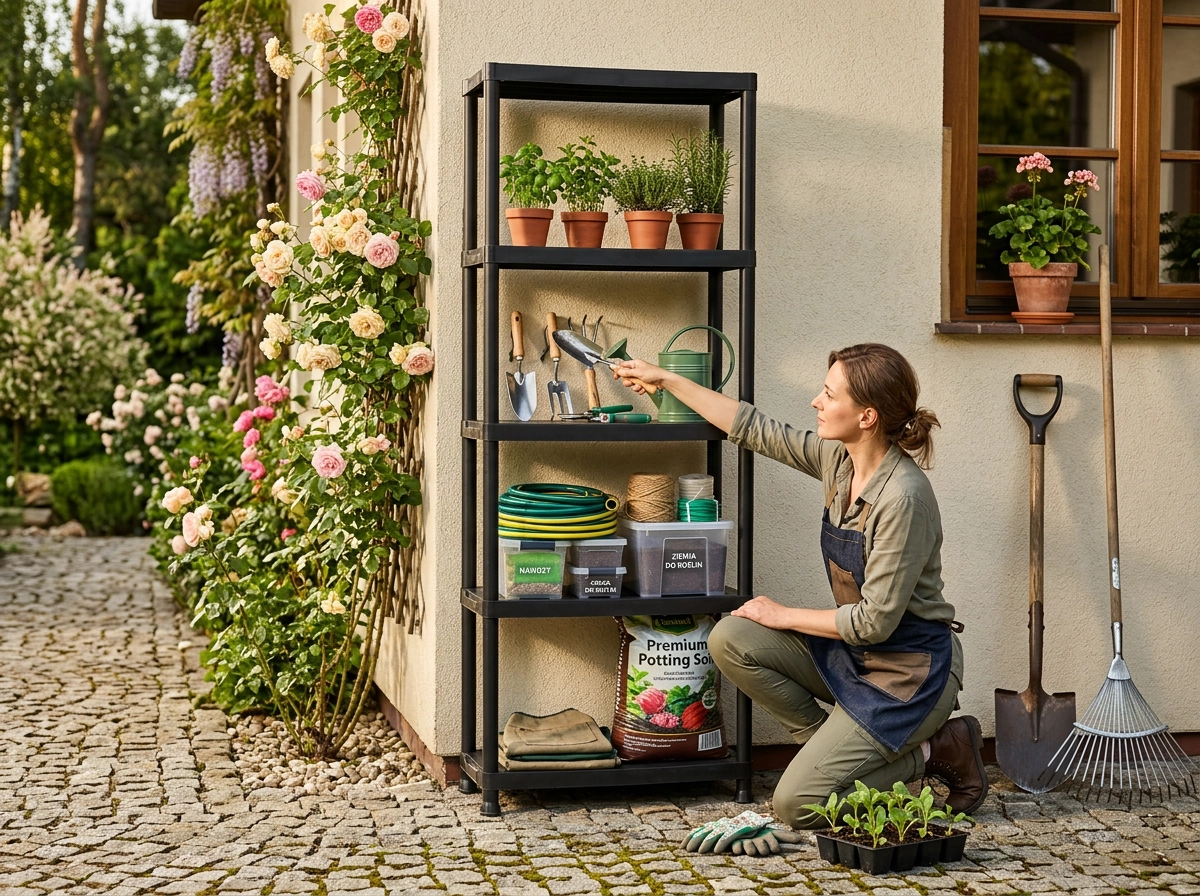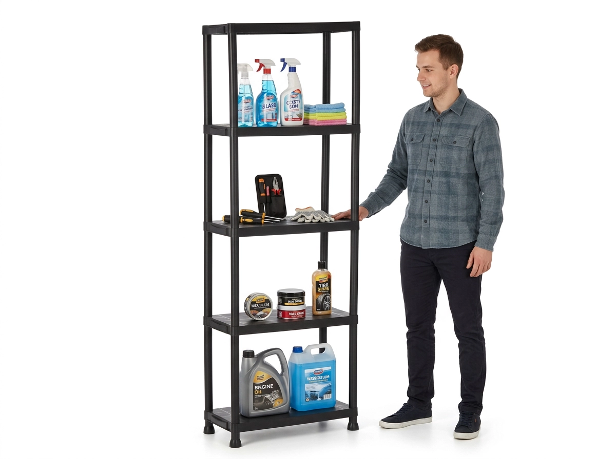 A műanyag szerkezet stabil, nedvességálló és egyszerűen tisztítható – ideális garázsba, pincébe és a háztartásba.