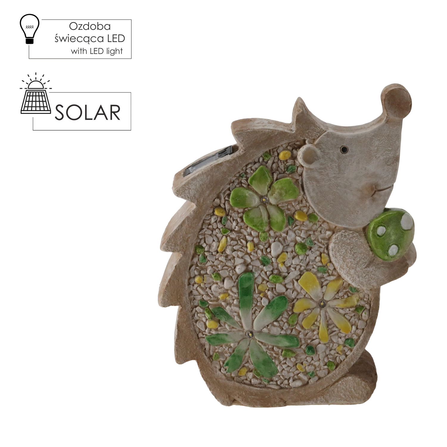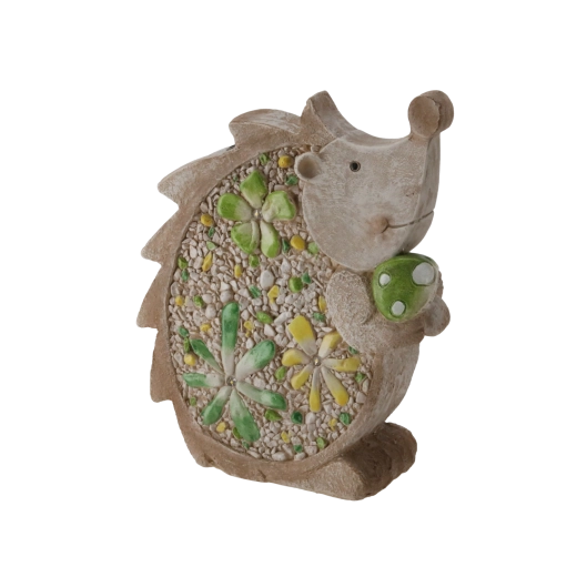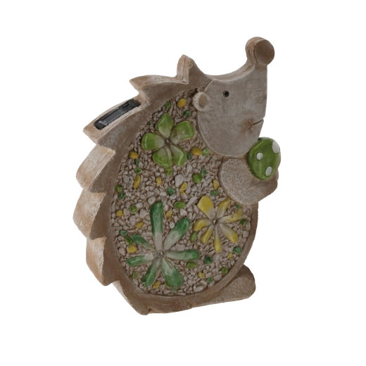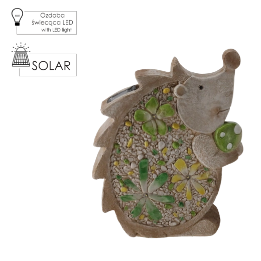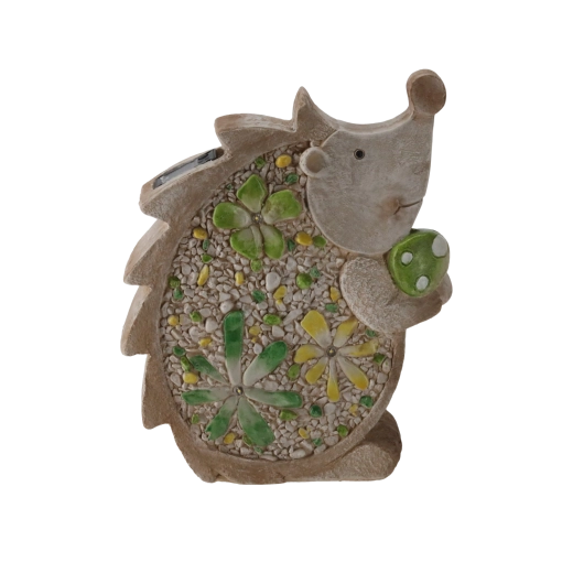 Stílusos kerti sün figura szolár LED világítással, amely finom, kellemes fénnyel ragyogja be kertjét, teraszát vagy erkélyét. A lapos kialakításnak és a 28 × 9,5 × 34,5 cm-es méreteknek köszönhetően könnyen elhelyezhető különböző felületeken, a strapabíró kivitel pedig kültéren is hosszú élettartamot biztosít.