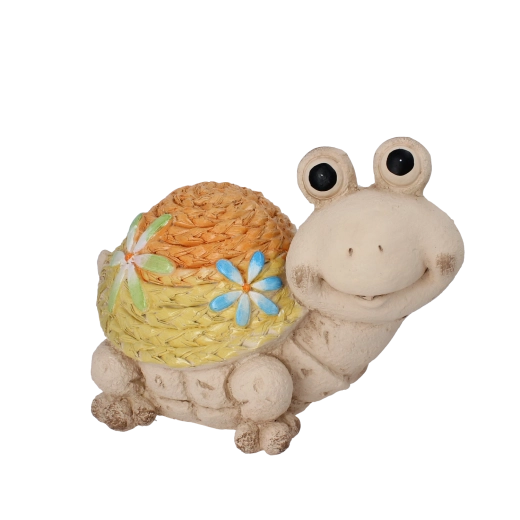Ez a stílusos kerti teknősfigura karakteres kiegészítő, amely életre kelti bármely kültéri teret. Kiemelkedik a gondos kidolgozással és a részletes dizájnnal, így hatása hiteles és természetes. A páncél kötött mintája egyedi megjelenést ad a dekorációnak, amely első pillantásra magára vonja a figyelmet.