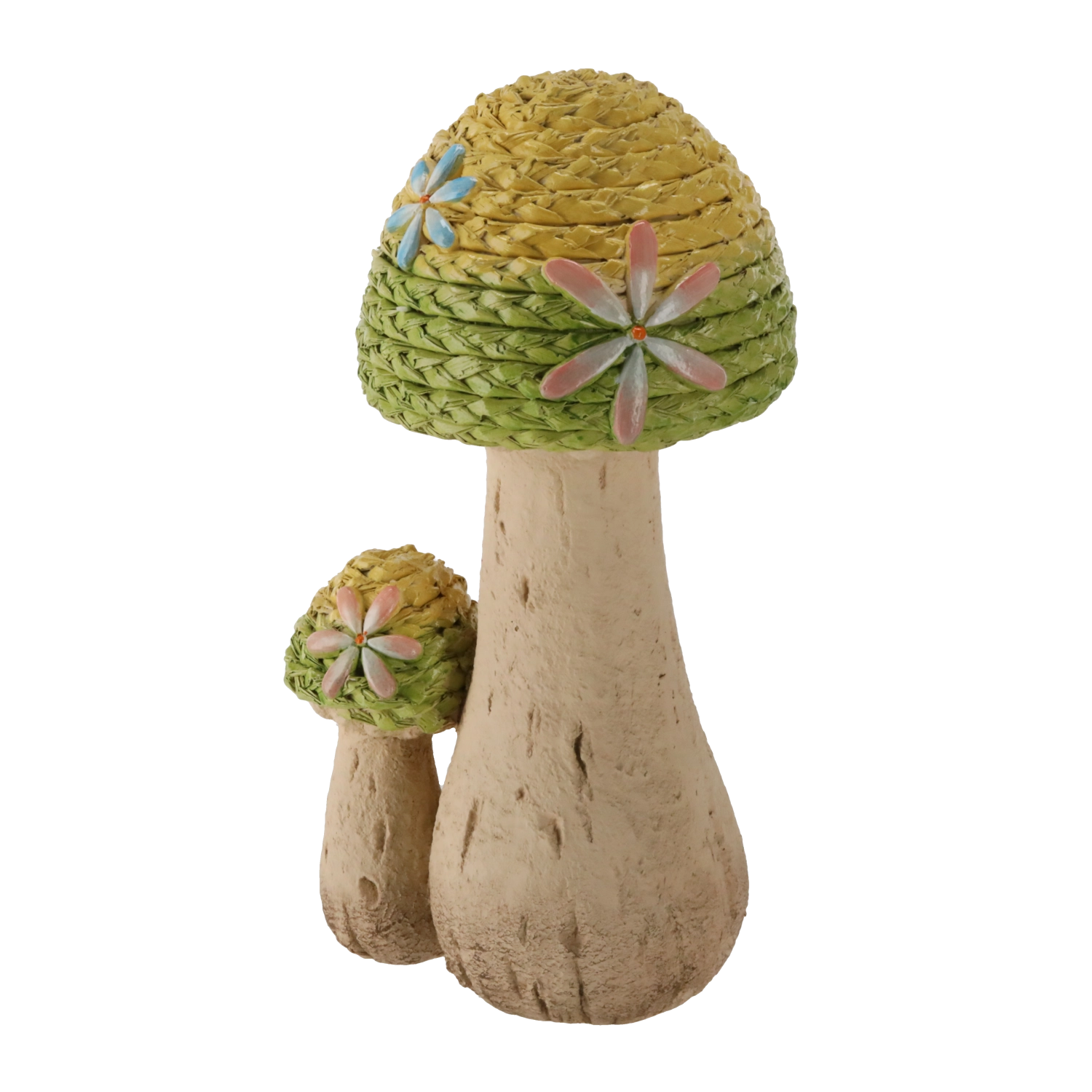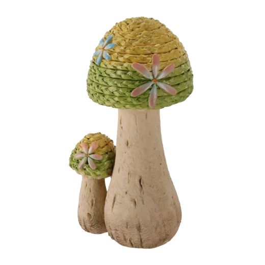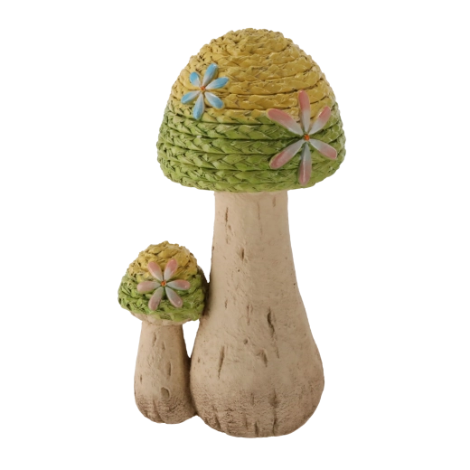 Ez az elegáns kerti figura fonott gombamotivummal finom textúrájával és pasztelles részleteivel hívja fel magára a figyelmet, kiemelve természetes, kézműves jellegű megjelenését. Stabil alapjának köszönhetően könnyedén elhelyezhető a kültéri felületeken.