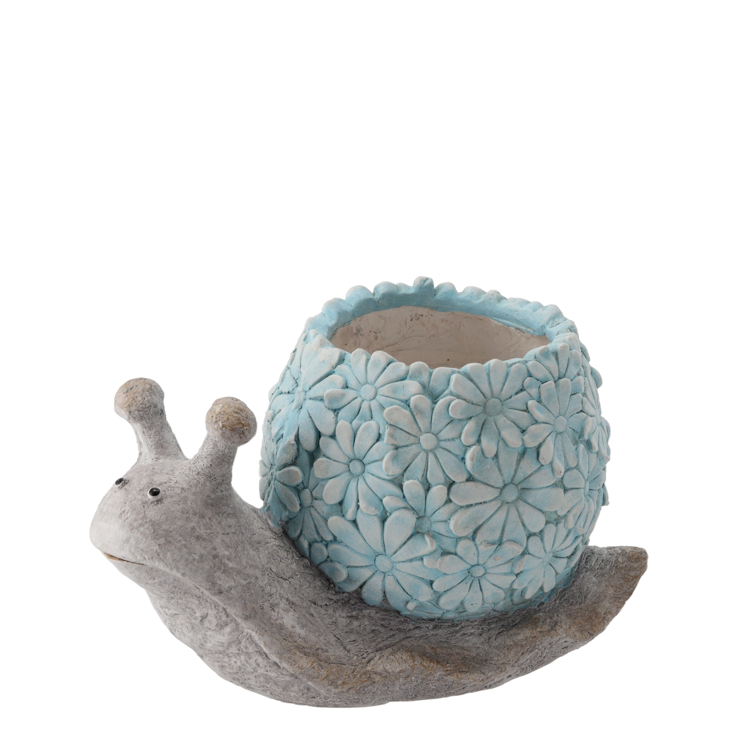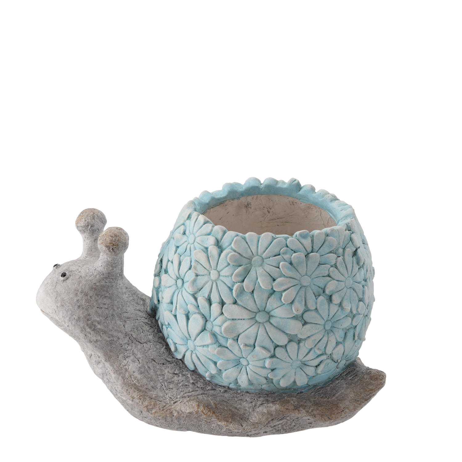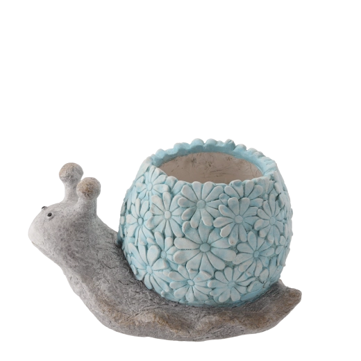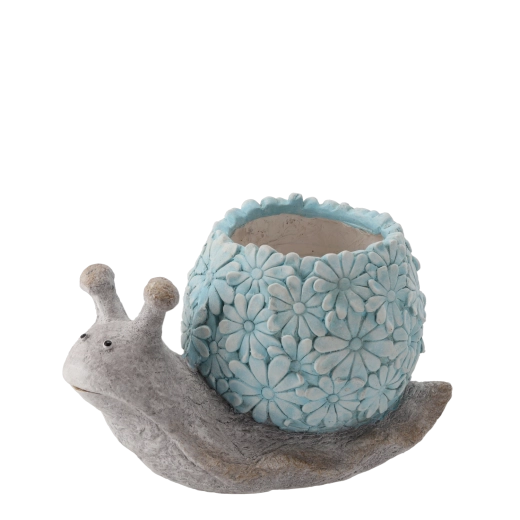 A csiga dekoratív, domború virágmintás háza egyediséget kölcsönöz a térnek, és kiemeli kertje vagy erkélye karakterét.