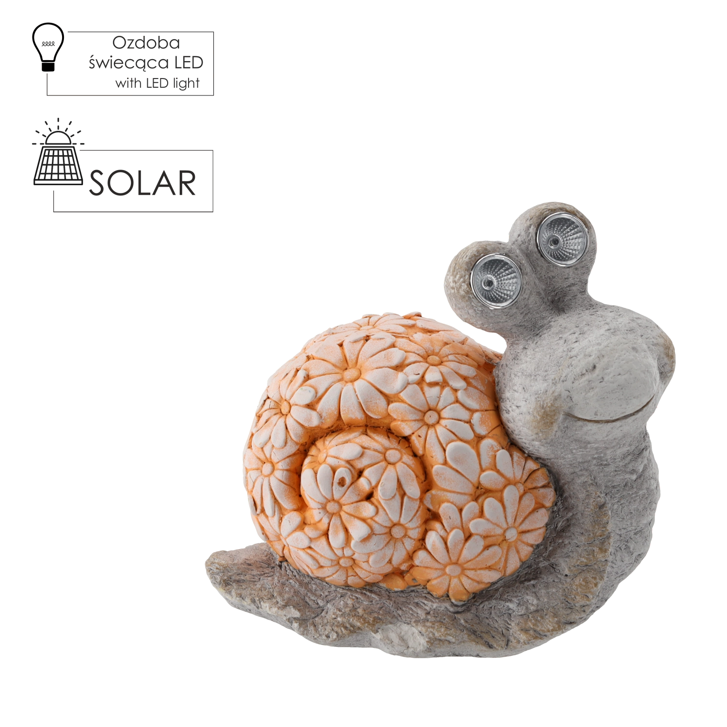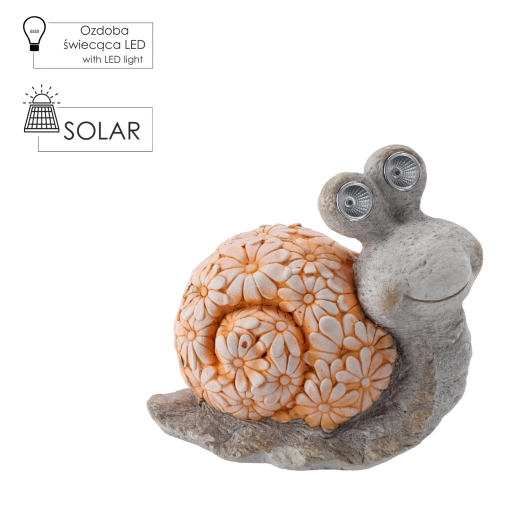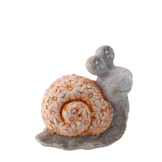 Alakítson ki meghitt sarkot ezzel a dekoratív csigával, amely nappal energiát gyűjt a napelem segítségével, sötétedés után pedig magától felkapcsolja a szemek finom fényét. A valósághű dizájn virágmintás csigaházzal és kőhatású megjelenéssel tökéletesen illik az ágyások közé, az ösvények széléhez vagy vízi elemek mellé.