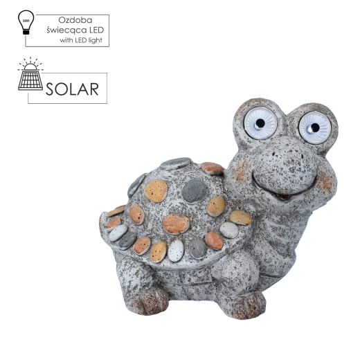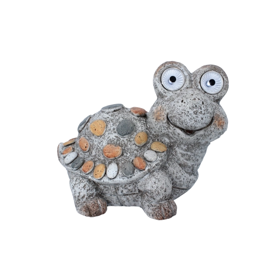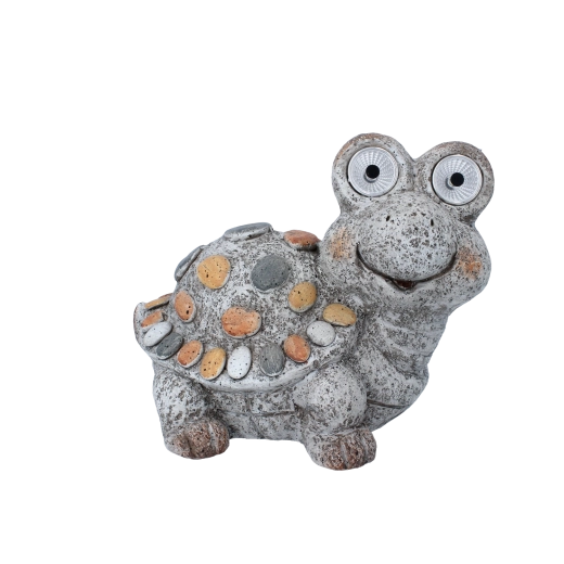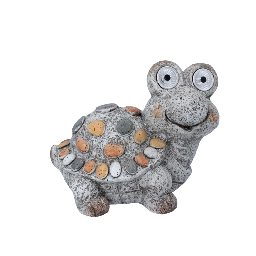 Ez a dekoratív teknős részletgazdag kidolgozásával és kellemes, kőszerű megjelenésével tűnik ki, amely bármely kültéri térhez illik. A beépített napelem napközben feltölti a beépített akkumulátort, sötétedés után pedig a teknős szemei automatikusan felkapcsolnak, így meghitt hangulatot teremtenek kábelezés nélkül.