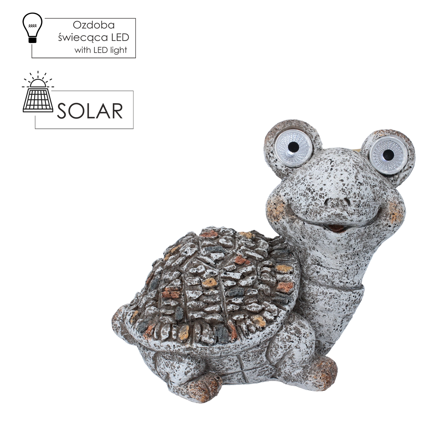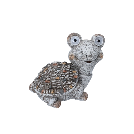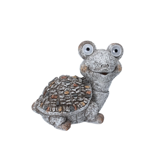 Ez a játékos teknősfigura azonnal barátságos hangulatot teremt kültéri környezetében. A beépített napelem napközben tölti az akkumulátort, és a szemekben lévő LED-ek sötétedéskor automatikusan felkapcsolnak, így nincs szükség kábelekre vagy konnektorra. Kompakt méreteinek köszönhetően könnyedén elfér lépcsőn, párkányon, szegélykövön, balkonládában vagy ágyásban.
