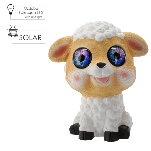 Aranyos kerti bárányfigura beépített napelemes táplálással és két meleg fényű LED szemmel, amely gyönyörűen megvilágítja az ágyást, a teraszt és a bejáratot. A tartós MGO anyagnak (magnézium-kompozit és üvegszál) köszönhetően kiválóan ellenáll az időjárásnak, és egész évben megőrzi megjelenését. Kábelek nélkül, gondtalanul – nappal tölt, éjjel világít.