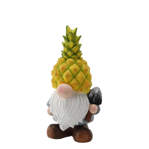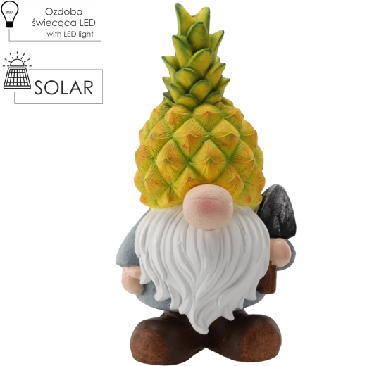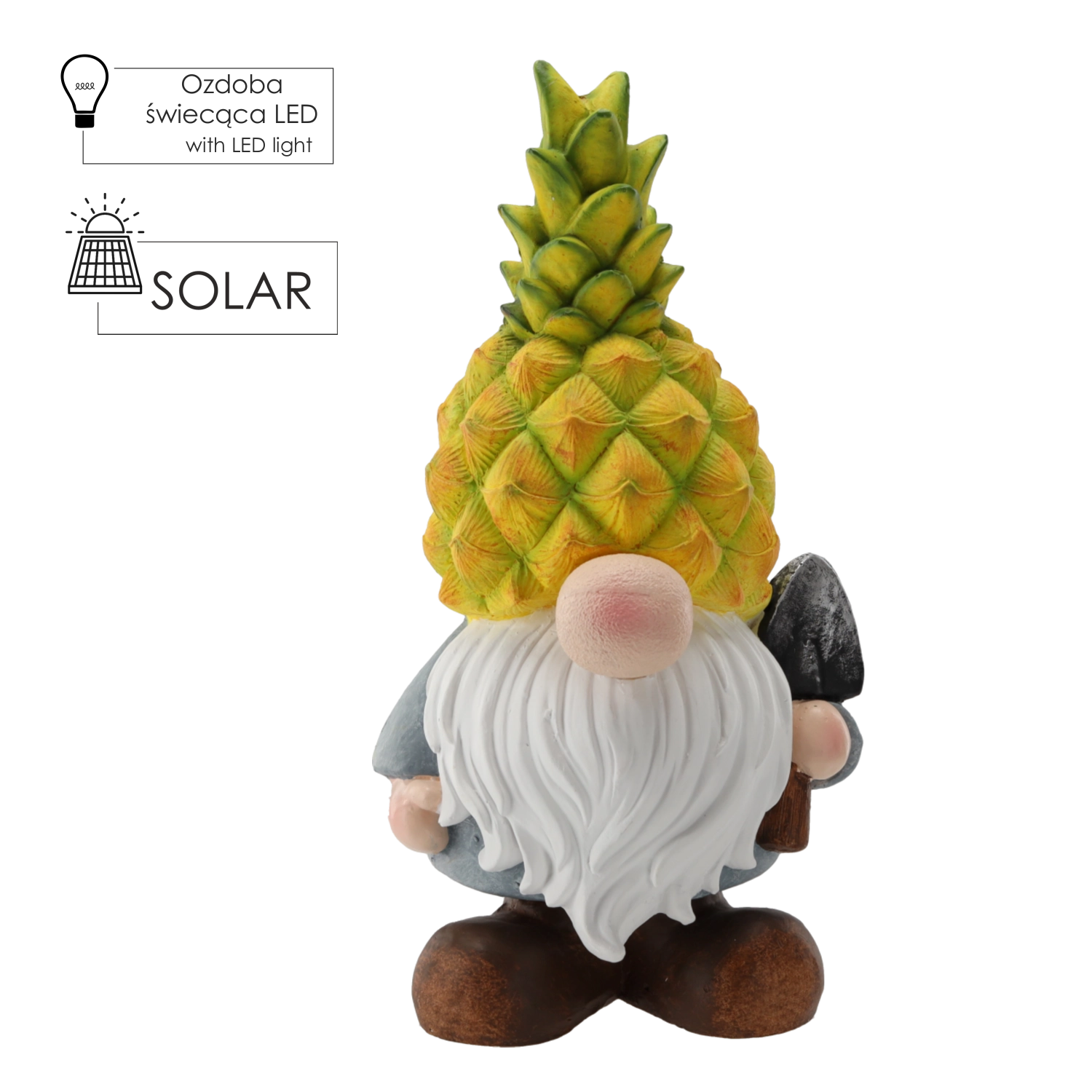 Az ananász részletgazdag textúrája és a karakteres, szakállas manó egyediséget kölcsönöz a kertnek vagy terasznak, estére pedig kellemes hangulatot teremt.