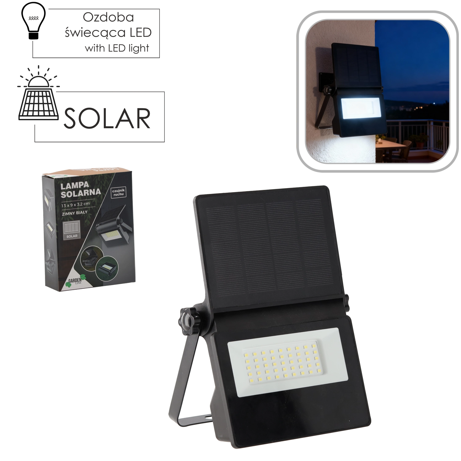 Praktikus és takarékos kültéri világítás kábelezés nélkül. A 13 × 9 × 3,2 cm kompakt méretű napelemes LED lámpa nappal automatikusan tölt, sötétedés után pedig aktívan figyeli a területet. Az integrált PIR szenzor csak mozgás észlelésekor kapcsolja fel a fényt, így energiát takarít meg és meghosszabbítja az akkumulátor élettartamát.