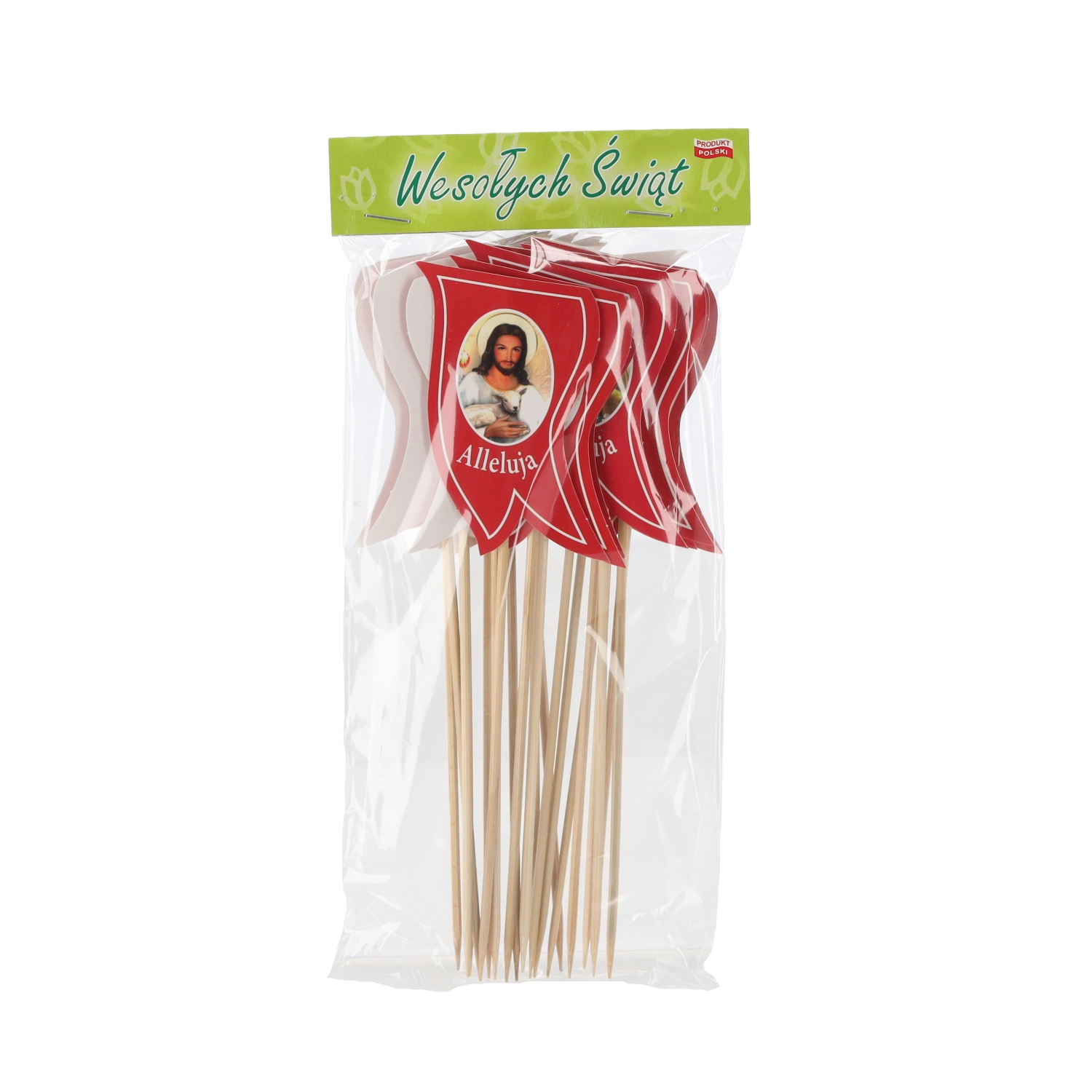 Dobd fel a tavaszi ünnepeket vidám húsvéti zászlócskákkal, amelyek remekül illenek kosarakhoz és hagyományos desszertekhez, például mazurekhez. A készlet 20 darabot tartalmaz a könnyű és egységes díszítéshez több tárgyon vagy felületen. A könnyű papíranyag és az egyszerű használat gyors dekorálást tesz lehetővé látványos, ünnepi hatással.