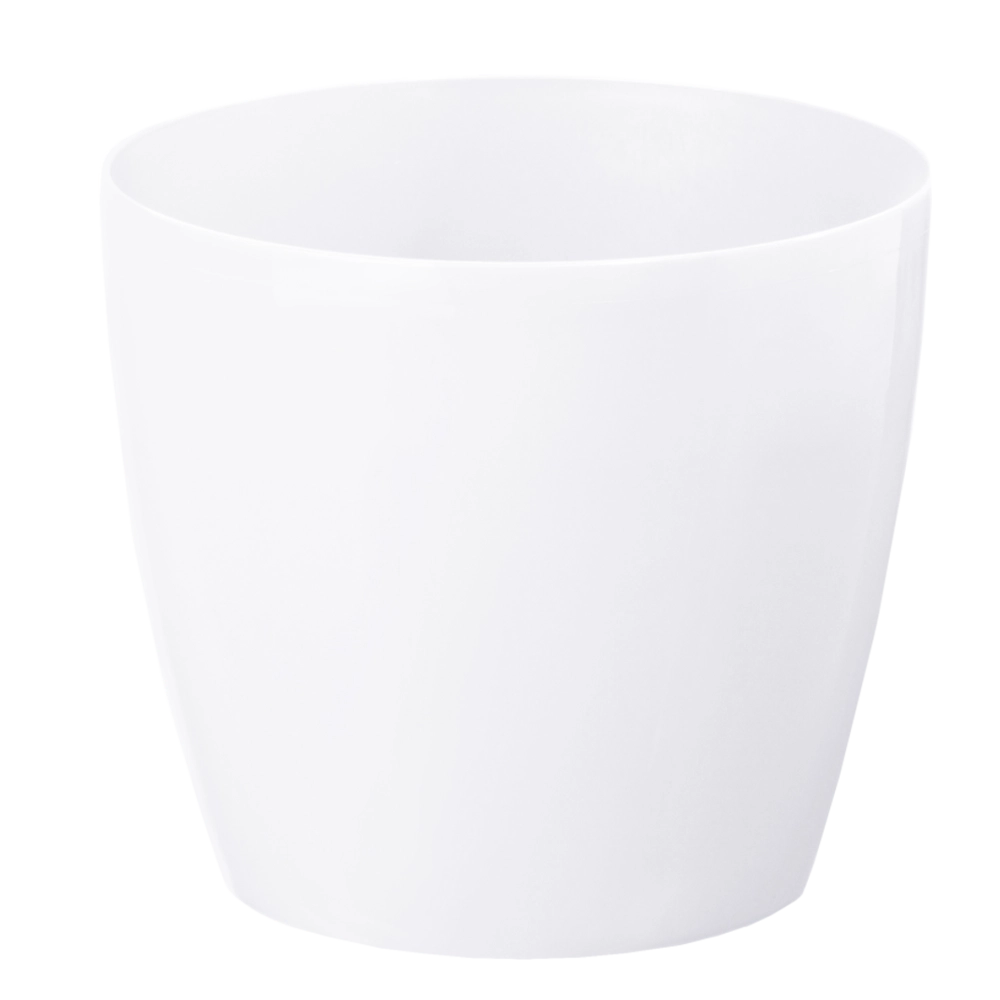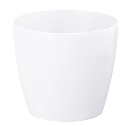 A fényes fehér felület és az enyhén kúpos forma friss, modern megjelenést kölcsönöz minden térnek, és elegánsan kiemeli a növényeket.