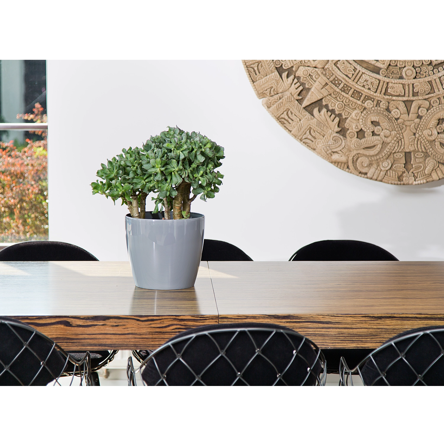Remekül mutat asztalon, párkányon, erkélyen és teraszon is. Minimalista formája számos berendezési stílussal harmonizál.