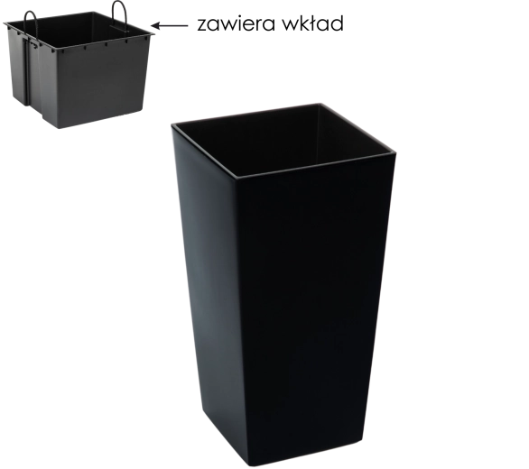 Az elegáns Finezja virágtartó fekete, fényes felülettel remekül illik beltérbe és kültérre egyaránt. A csomag része egy kivehető betét fogantyúkkal a kényelmes átültetéshez. Az ellenálló műanyag fagy- és időjárásálló, valamint könnyen tisztítható. Okos méreteinek köszönhetően elegendő helyet biztosít a gyökereknek anélkül, hogy az egész térfogatot földdel kellene megtölteni.